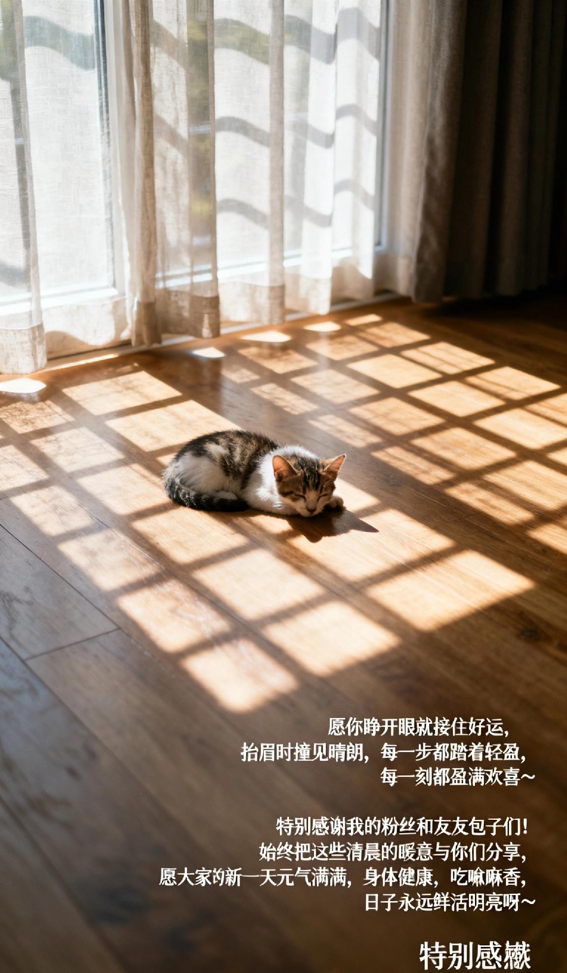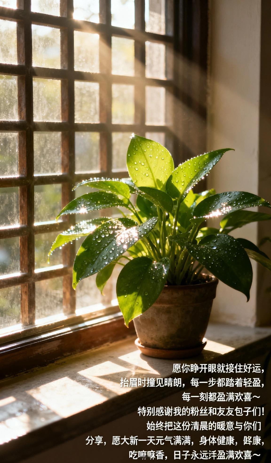 晨光漫过窗棂,把温柔揉进风里——愿你睁开眼就接住好运,抬眉时撞见晴朗,每一步都踏着轻盈,每一刻都盈满欢喜~ 特别感谢我的粉丝和友友包子们!始终把这份清晨的暖意与你们分享,愿大家新的一天元气满满,身体健康,吃嘛嘛香,日子永远鲜活明亮呀!早晨的祝福语