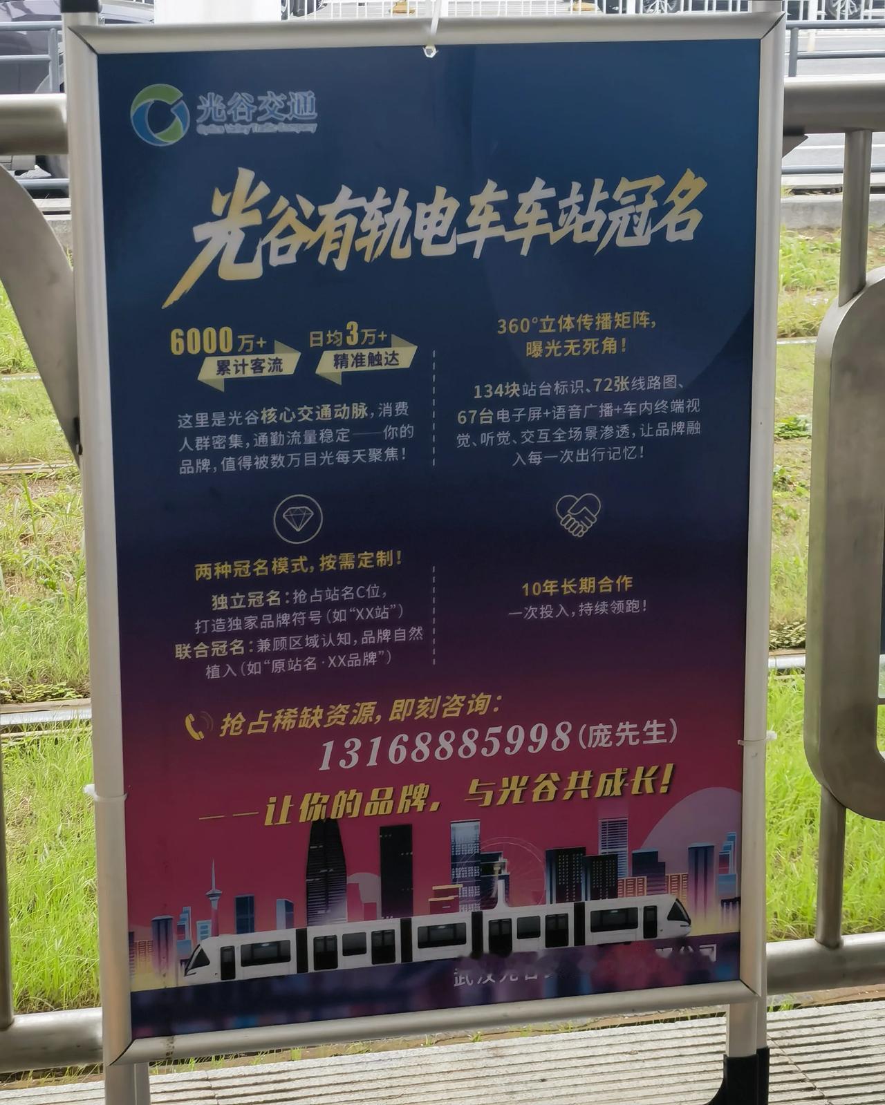 有钱就能冠名武汉车站站名?今天坐光谷有轨电车看到车站冠名的广告:欢迎为光谷有轨电车车站冠名,冠名形式为原站名+XX品牌,一旦冠名成功,就可以全天候视听环绕播报商业品牌名称,起到巨大的品牌推广效应。 具体多少钱冠名费没写,估计不便宜,不是一般商家能拿的出来的。
