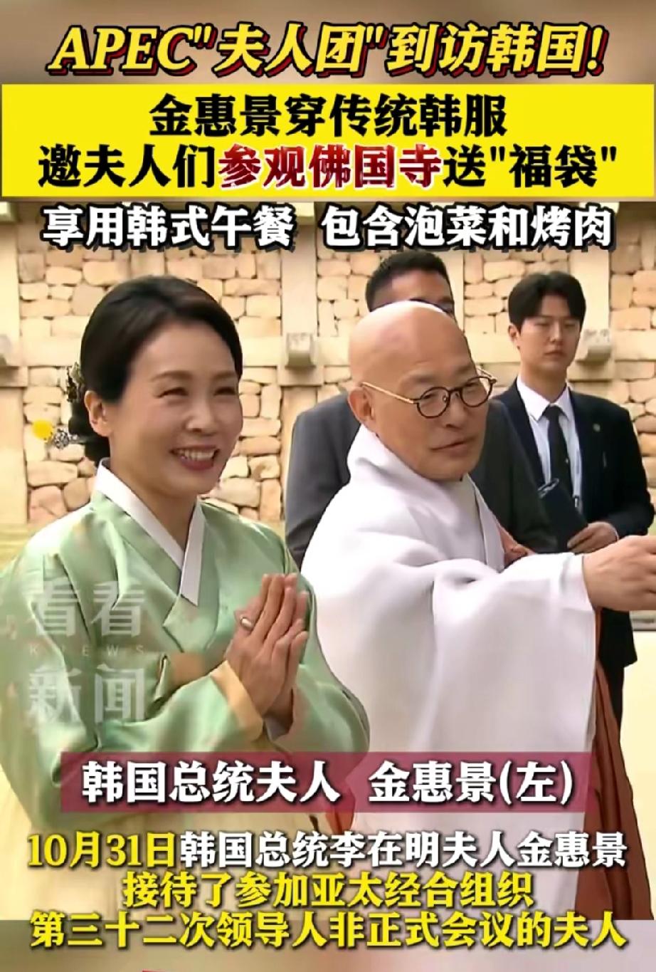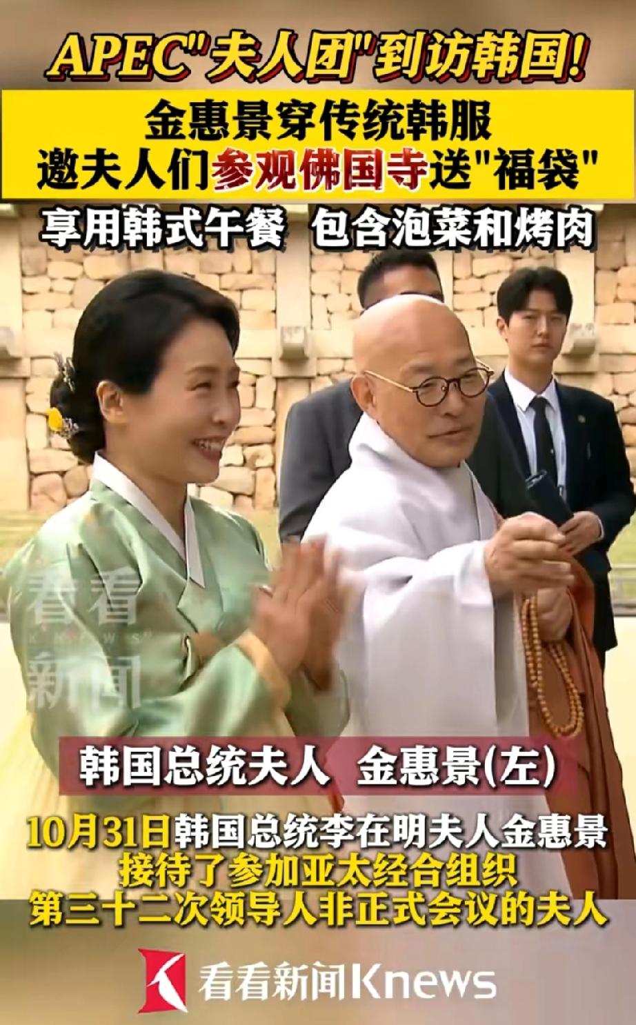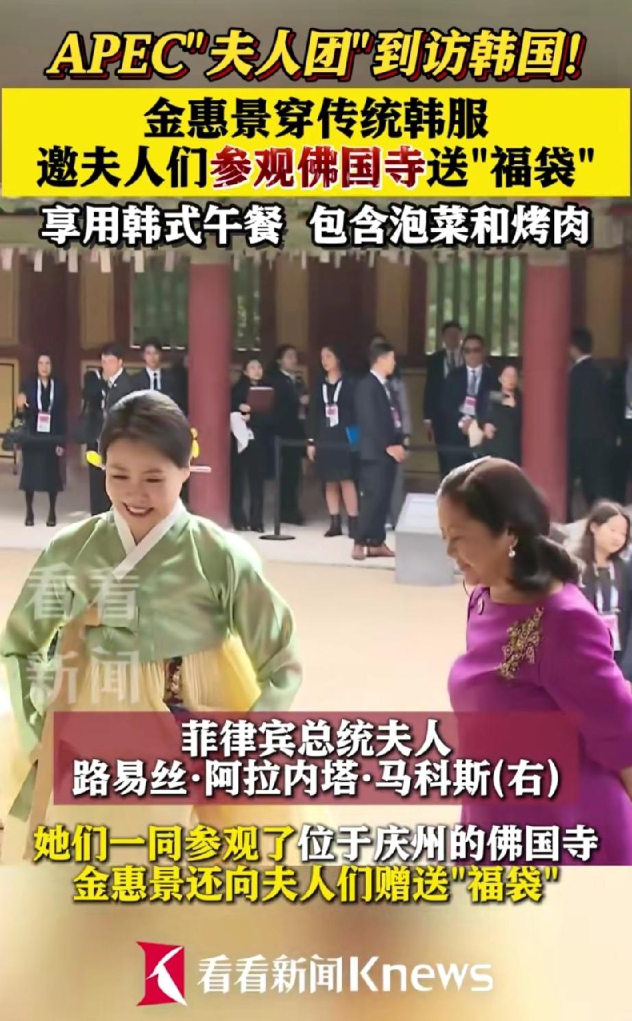 新任韩国夫人金慧景,一袭嫩黄缀嫩绿的韩服雅致得体,经典发髻挽起温婉气韵,宛如从古典电影中走来的贵女,自带时光沉淀的从容。 和煦又温暖的笑容,传递着安心又温暖的信息。 她的脸庞未施过多修饰,岁月留下的温润痕迹里,透着蓬勃的生命力,既有不加雕琢的亲和暖意,又不失雍容华贵的气度,堪称最具韵味的韩国夫人。 这样的韩国夫人,看着实在令人欢喜,应该是懂得付出爱,又被爱着的幸福女人。 来源:看看新闻KNEWS