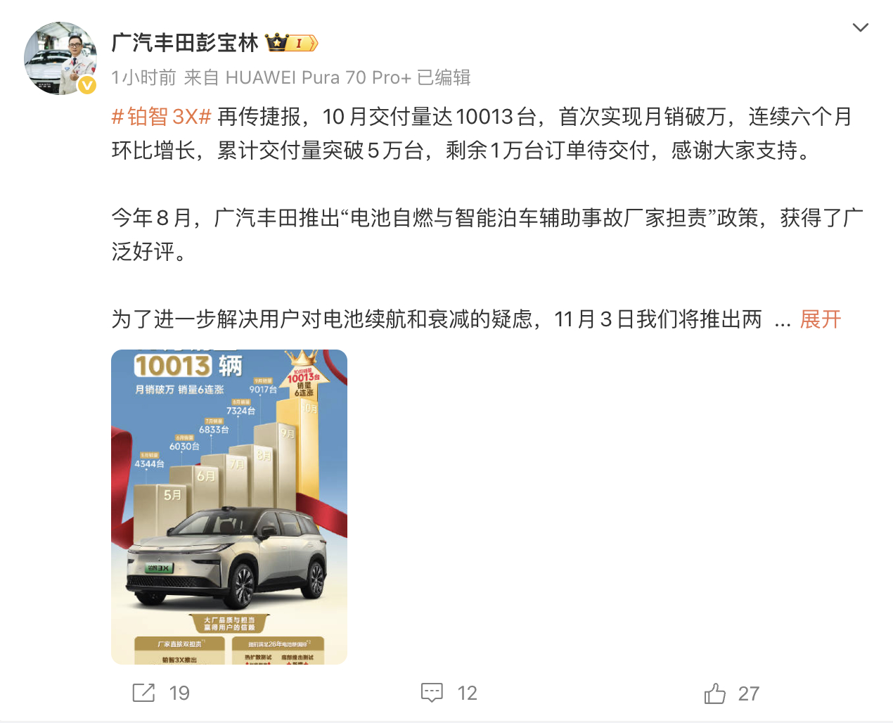 铂智3X月销量破万广丰即将推出电车电池新政策
