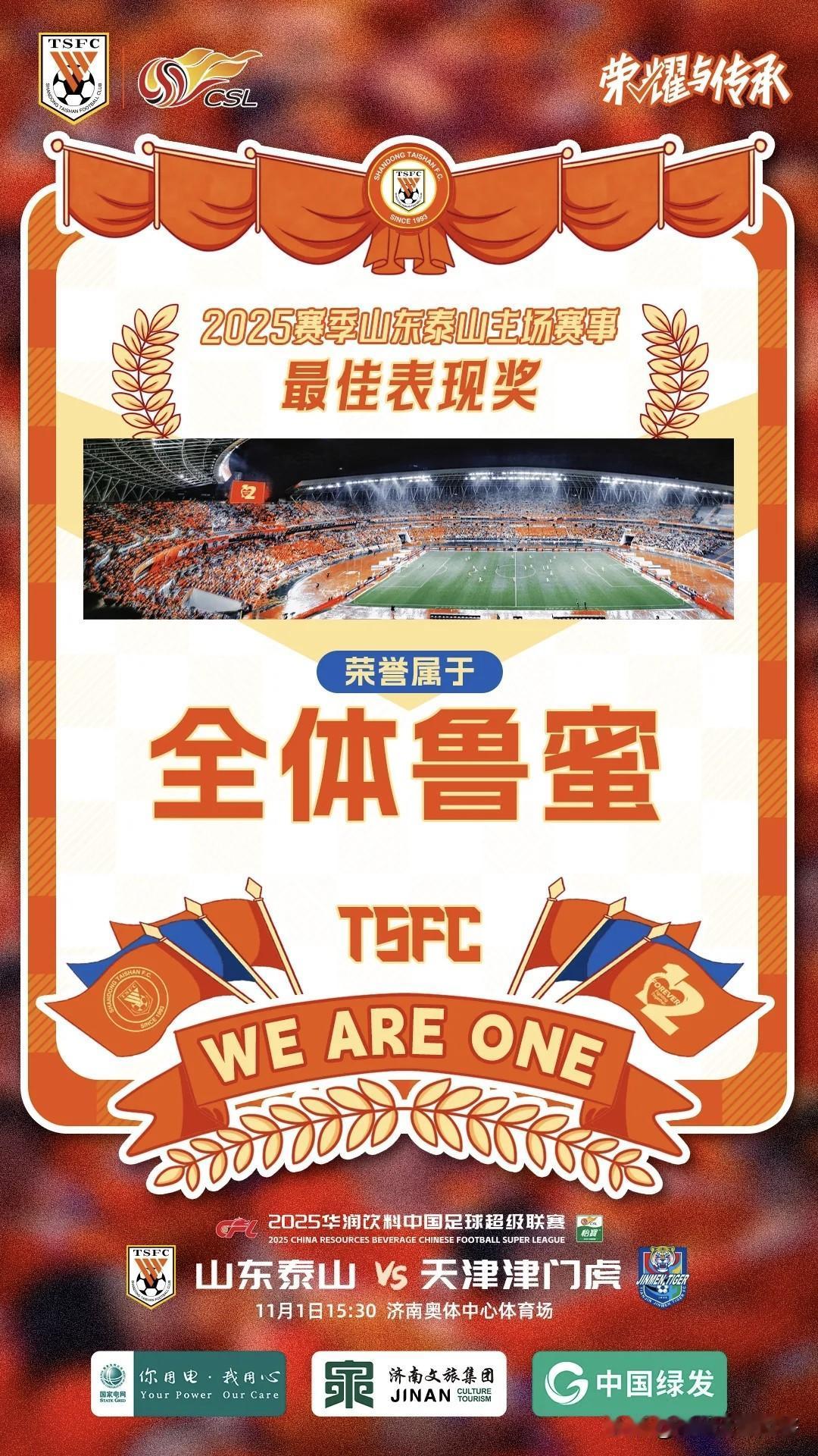 今天下午,山东泰山主场迎战天津津门虎,这也是泰山队本赛季中超最后一个主场赛事。泰山队赛前海报用最佳表现奖,送给风雨无阻支持球队的鲁迷拥趸们。 在韩鹏上调U20全运征战全运会后,临场代理主帅又换成了唐田。而后者恰是崔康熙时的助教。 鲁津两支无欲无求的球队,分列积分榜的第五、六位。这个中超老五的争夺无疑是本场比赛的一大看点。 当然,对于目前中超头号射手,泰山队的卡扎伊什维利来说,目前以24球登顶,离李金羽保持的单赛季26球仅差两球,联赛还有两轮的情况下,还是有很大的机会的。 值得一提的是,今年夏天二次转会而来的中后卫洛佩斯赛前因伤无缘本场比赛,同时也刷新了外援无缘上场而令主队球迷欢呼的第一人。前一个的保持者是,个人中超首秀即被红牌罚下的睡神卡达尔。 赛前传出王大雷因肩伤缺席训练,而久疏战阵的于金永参加了赛前的合练。从泰山b队上调一队的刘骐玮已上调山东U20全运队,球队第四名将孙启航本赛季迄今为止出场次数依然为零,已不再年轻的他,下赛季估计难逃离队的厄运。 中超
