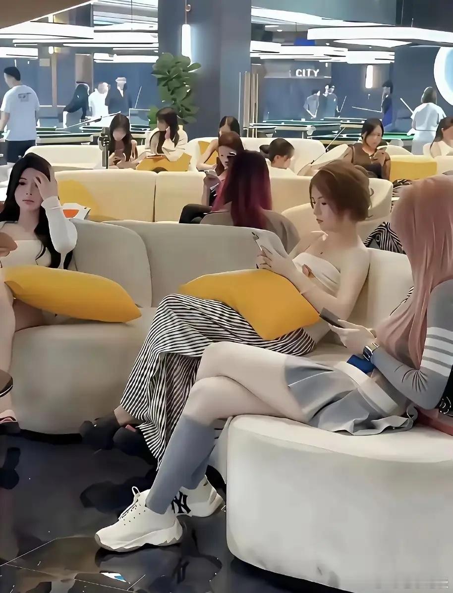 台球厅成了美女扎堆的地方。