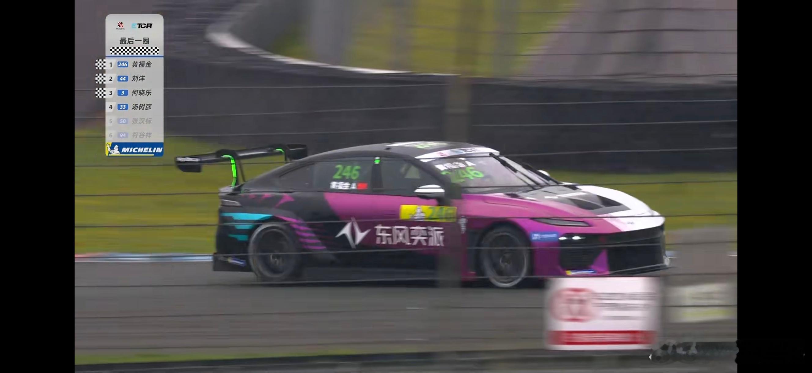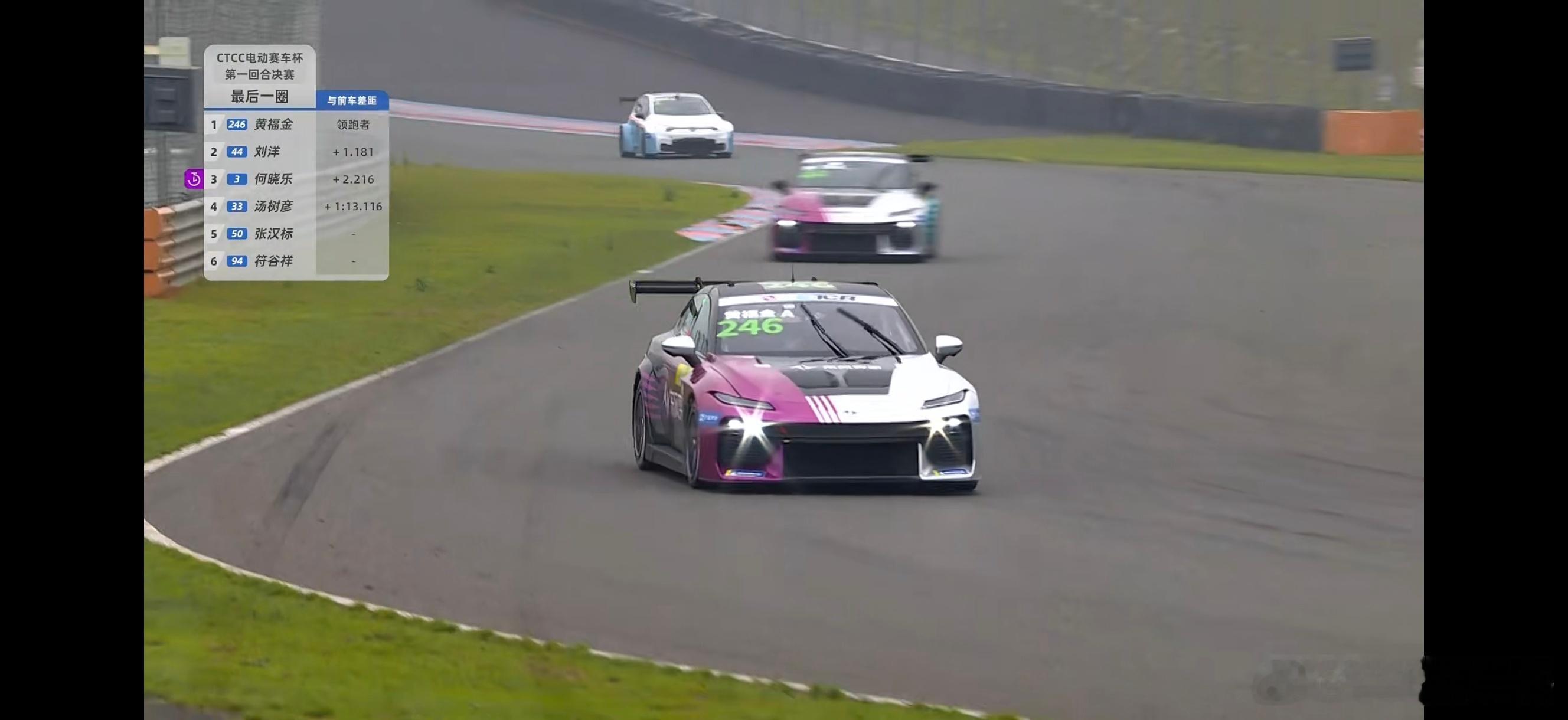 看了几分钟的CTCC电动组赛事直播,全场只见三台车,一二名是东风翼派007,第三名是一台大众id3。第4名全场不见踪影,另外两台车没发车…