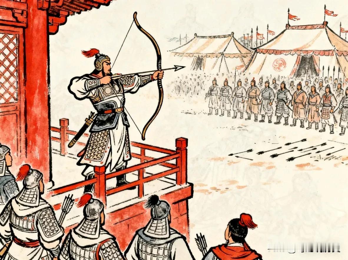 正史里关羽过五关斩六将是假的,赵云七进七出是假的,典韦手抓尸体当武器也是假的,偏偏最不可能的辕门射戟是真的!可想而知吕布的武力值有多强! 建安元年(公元196年)的淮北大地,战云密布。袁术麾下大将纪灵,率领数万精锐步骑,兵锋直指小沛的刘备。刘备势单力薄,情急之下,向屯驻于下邳的吕布求援。 吕布的营帐内,并非一片主战之声。有部将进言:“将军常欲杀刘备,今可假袁术之手以除之。”这看似是一个坐收渔利的良机。 然而,吕布的目光穿透了眼前的纷争,看到了更远的威胁。他掷地有声地对众人说:“不然。袁术若击破刘备,则北连泰山诸将,我将被其团团包围,陷入孤立无援之境。故此,刘备不得不救!” 此言一出,尽显吕布并非一介只知好勇斗狠的武夫,其胸中自有战略韬略与地缘政治的考量。唇亡齿寒,这是他最本能的警觉。 决断既下,吕布亲率步骑千余人,疾驰而至。吕布威名,震动中原。纪灵闻吕布亲至,果然忌惮不已,当即收兵扎营,不敢轻进。 吕布并未直接挥军与纪灵厮杀,他在距下邳西南一里处安营,随后做出了一个极具胆魄与创举的决定——他同时邀请了杀气腾腾的纪灵与危在旦夕的刘备,前来自己的大营宴饮。 这是一场危机四伏的宴会。帐中,刘备与纪灵分席而坐,双方将士手按兵刃,气氛凝重如铁。作为东道主的吕布,坦然居于主位,举杯间,气定神闲。 他对满腹狐疑的纪灵及诸将朗声道:“玄德,乃我吕布之弟也。今日我弟被诸位所围,故特来相救。我吕布生性不喜看人争斗,唯独喜好为人化解纷争!” 此言既表明了立场,也给出了台阶。然而,空口无凭,如何能让拥兵数万的纪灵心甘情愿地退兵? 于是,吕布命人于营门立起一杆戟。他环视众人,目光如电,提出了一个看似不可能的条件:“诸君请看我射这戟旁的小支(月牙形利刃)。若我一箭射中,你等双方便罢兵归去;若不中,则任凭你们留下决斗。” 刹那间,全场寂然。所有人的目光都聚焦在那寒光闪闪的戟上,以及吕布手中那张弓。纪灵等人或许不信有人能于百步之外命中如此细微的目标,而刘备则屏息凝神,将全部希望寄托于此。 只见吕布引弓如满月,目光锐利如鹰隼。弓弦响处,一箭如流星破空,不偏不倚,“正中小支”! “将军天威也!”纪灵与其麾下诸将无不被这神乎其技的一箭所震慑,惊呼出声。这已非人力所能及,恍若天意。 一箭定乾坤。次日,纪灵等人在与吕布再度宴饮后,心悦诚服地引兵退去。一场即将爆发的惨烈大战,竟被吕布以如此不可思议的方式消弭于无形。 这一箭,射出的不仅是吕布冠绝天下的武勇,更是一个乱世豪强在复杂棋局中,凭借个人气概与智慧,强行维系自身生存空间的强势宣言。辕门射戟,遂成千古传奇。吕布 吕布的辕门射戟放到现在什么水平?