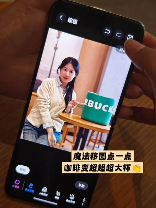 随手抠图移位,创意照片手拿把掐,看!我喝了“一桶”咖啡哈哈哈[喝奶茶R]