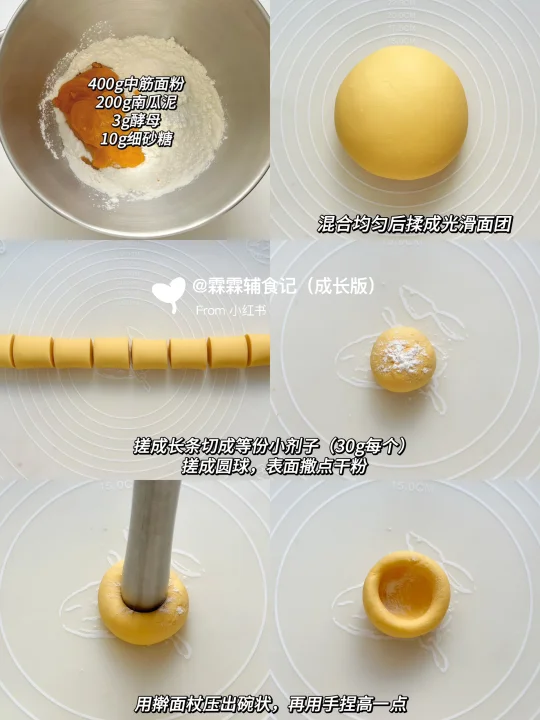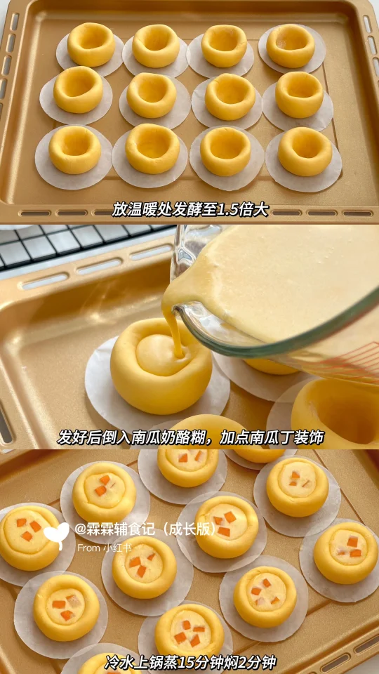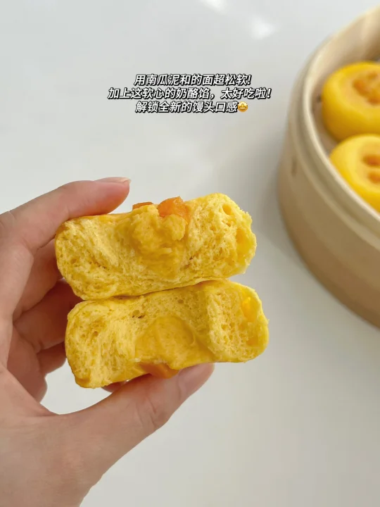 👋🏻hi大家 今天分享一款口感和颜值都很在线的南瓜奶酪软心馒头,有点像是巴斯克和馒头的结合,只不过巴斯克蛋糕是烤出来的,而这次做的是蒸的,结果也很好吃!一口惊艳~ 💛我发的这个配方可以做20个馒头,觉得多的可以把食材减半做,面团分成30g每个我觉得大小刚好,大家也根据自己的喜好调整大小哦! 奶香浓郁搭配南瓜的清甜,好吃到停不下来[哇R][哇R] 小朋友也超爱吃,喜欢吃甜的可以适当再加点糖,快快码住!周末给小朋友安排上叭[派对R] 配方做法参考: