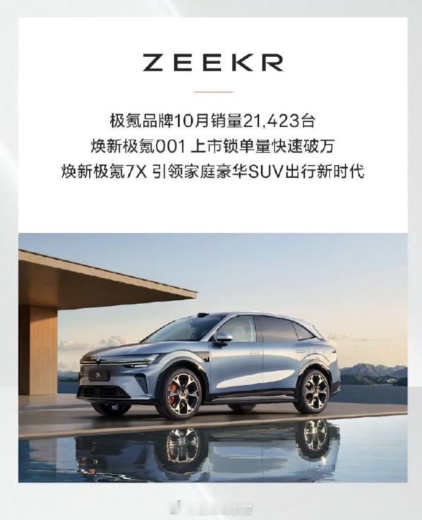 极氪10月销量21423台。308_IO新能源汽车极氪