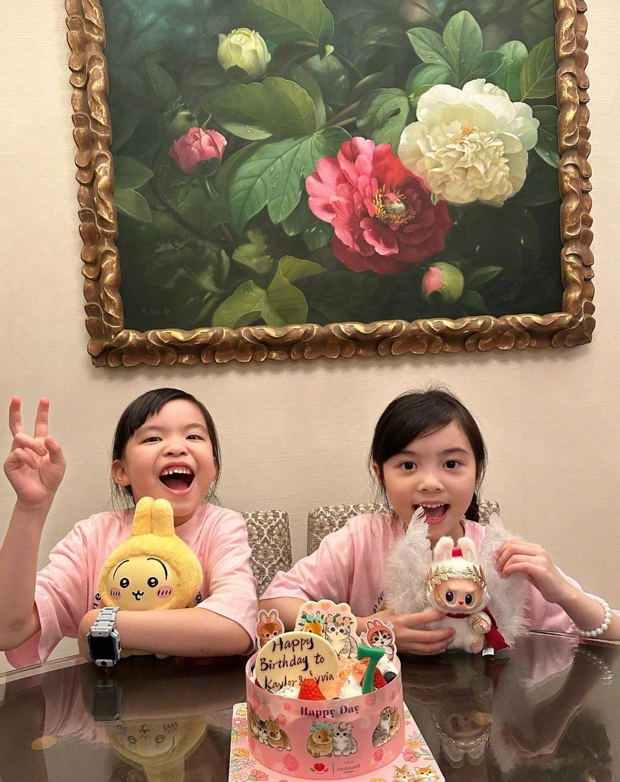 熊黛林晒双胞胎女儿换牙期照片,两个女儿明明明是双胞胎却一个像爸长得丑一个像妈特漂亮,对像爸的那个太不公平了。