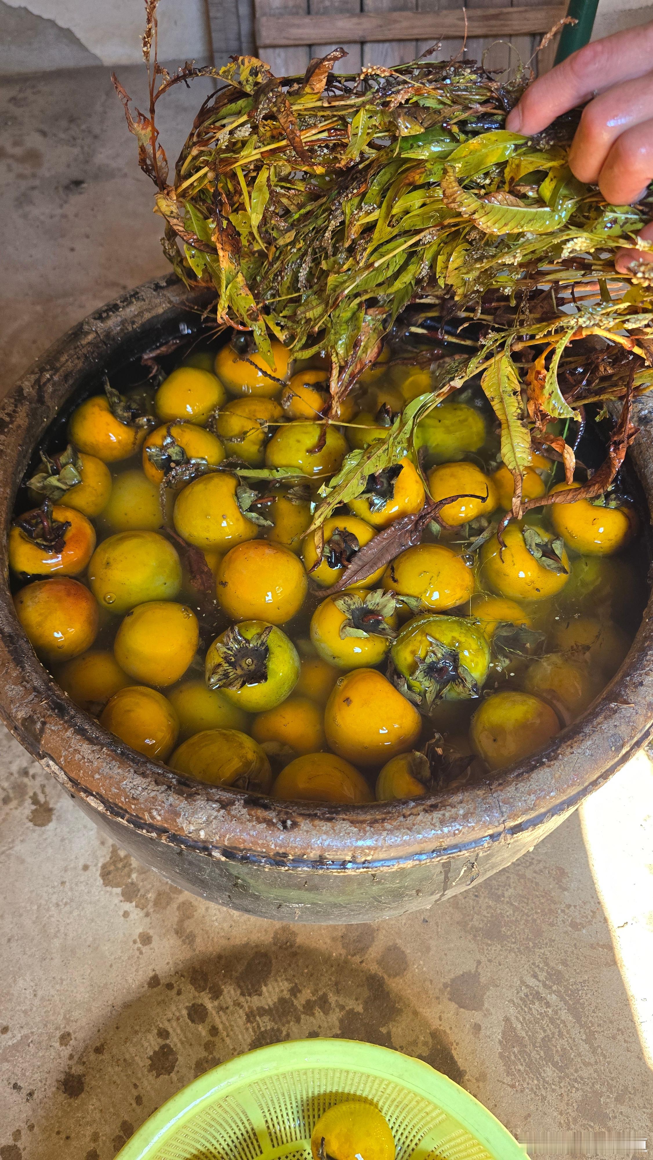 农村古法浸柿子