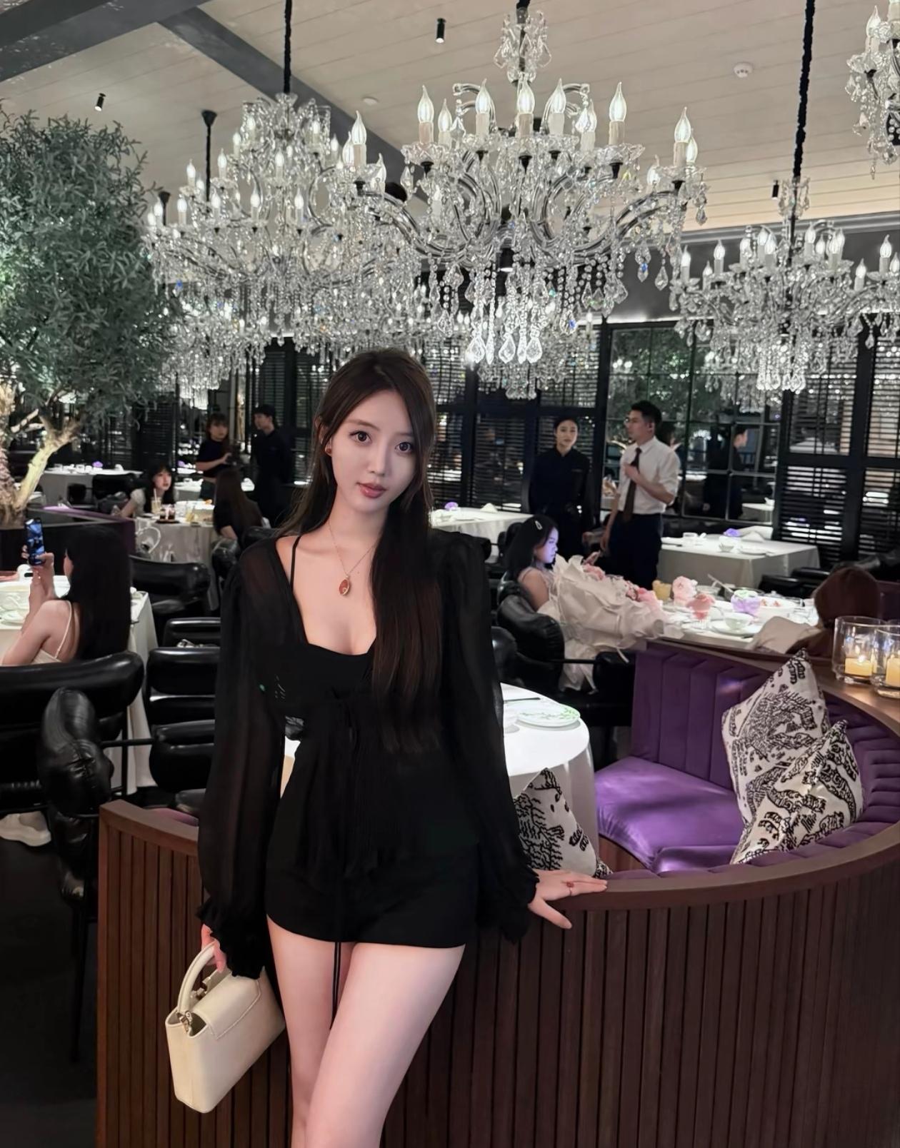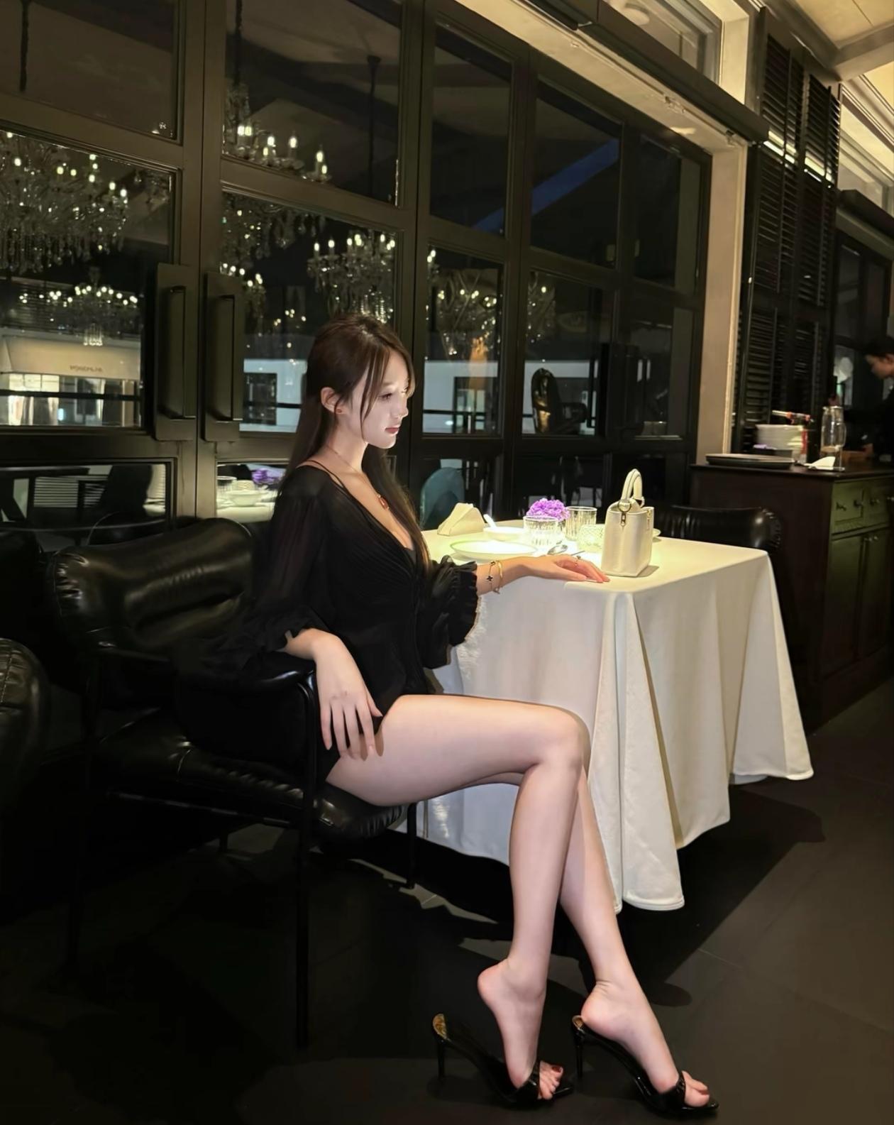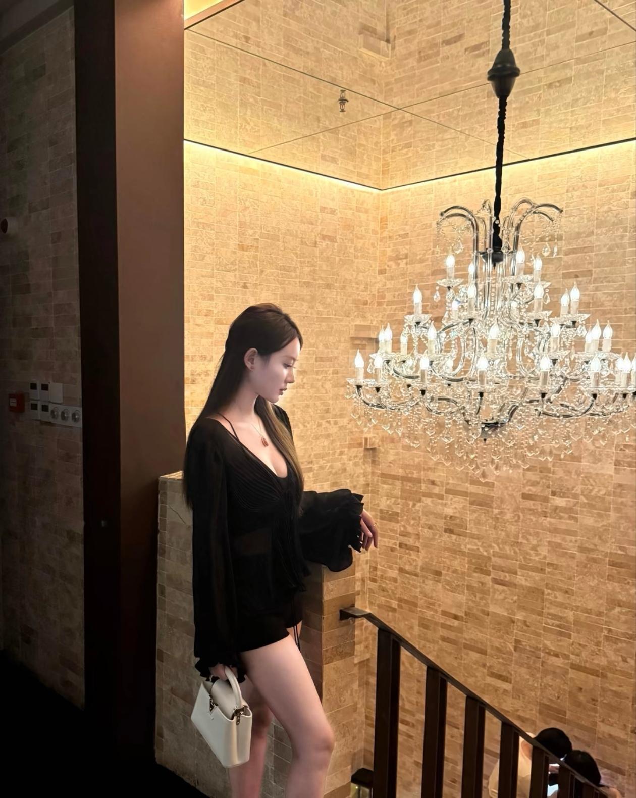 优雅黑裙,楼梯上的迷人时刻