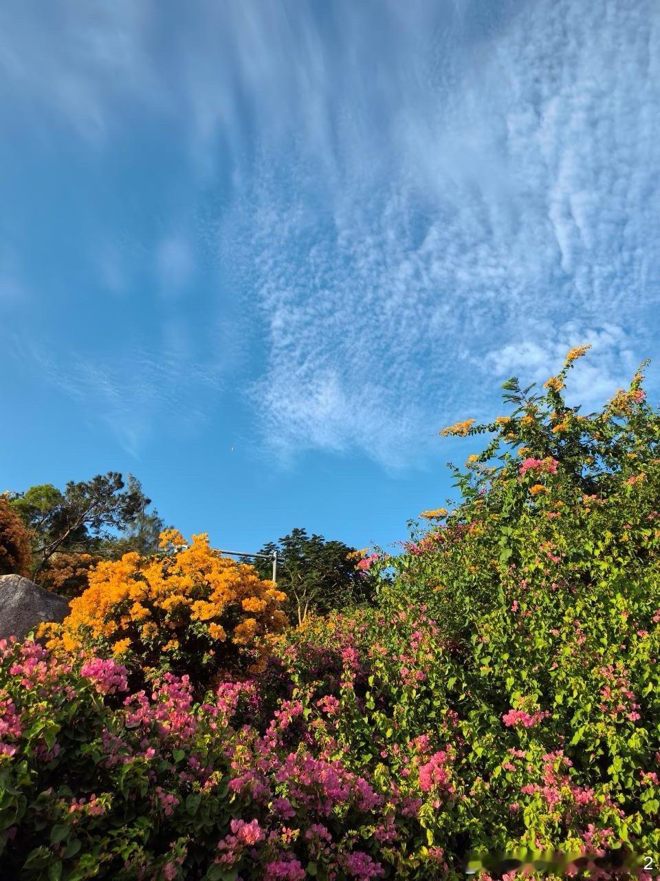 蓝天白云在加上这么漂亮的🌸简直就是一道美丽的风景线啊!