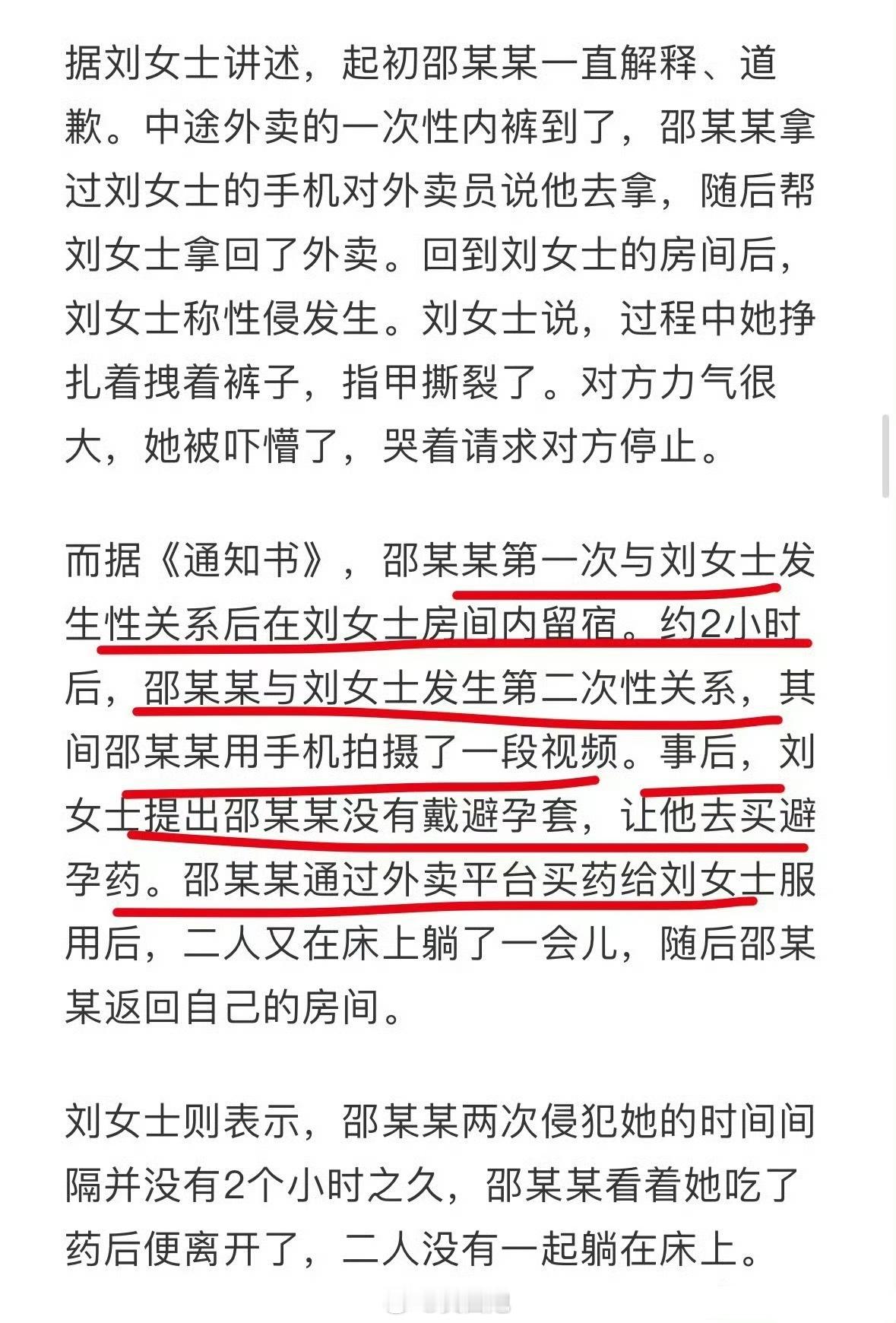 事件:邵某某与刘女士几个小时内连续在房间发生了两次性关系,还让男子买避孕药服用。