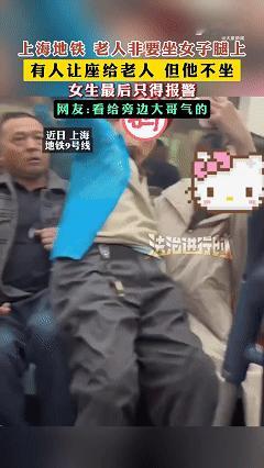 一上海老大爷在地铁上没有座位,有人把爱心座位让给他,他不坐,非要坐在一女生身上,女生最后无奈报警处理。 蓝衬衣的大爷直挺挺往姑娘腿上怼,人家姑娘穿的风衣,是别人的裤袜香一些吗?还是两条白晃晃的大腿好看?大庭广众之下,硬要坐别人大腿上,其他位置就不香啦哇。 有的老头子,专门瞄准穿短裙的年轻女性,坐上去还要故意晃两下,这算哪门子的体力优势?有这点想占便宜的心思,还不如好好锻炼一下自己的身体。这些案例,没收养老金,判五年,可治好他们这毛病。 那些嚷嚷 "让座能死" 的键盘侠真该来现场看看,当大爷屁股压下来的时候,小姑娘膝盖上的青紫三天都消不掉。 规则真空养出的怪现象,让原本温暖的敬老行为成了恐怖游戏。下次那些穿超短裙的姑娘都自觉携带防狼警报器吧,这大概是目前来说最心酸的文明进步。