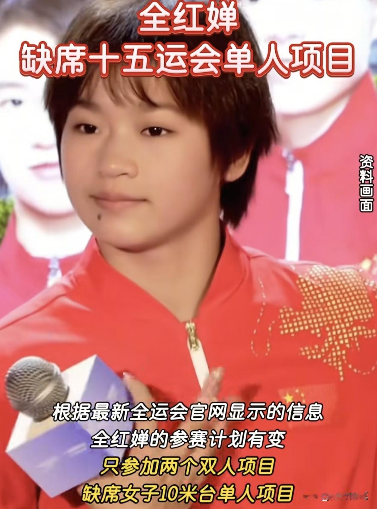 全红婵不参加全运会单人项目! 时隔183天盼来了全红婵复出比赛,没想到最引人关注的单人项目比赛,全红婵居然不参加了。 这里面不外乎两种原因: 一是因为旧伤没有完全恢复,平时单人缺少足够训练,所以决定放弃单人项目。 二是继续受到发育期影响,导致目前无法恢复以前的水平,广东跳水队内部竞争输给前面两位,所以没有拿到单人项目资格。 无论如何,现在赛程公布,全红婵不参加全运会单人项目已经是板上钉钉,虽然很多人不愿意相信,但是残酷现实就是全红婵目前的水平在广东跳水队内部都无法保证领先了。 坦白说,全运会既是全国重要赛事,也是新奥运周期重要的考察赛事,全红婵既然能够参加双人与团体,就证明她受伤病因素影响的可能性不大,大概率就是还跨不过十米跳台女子运动员发育期的关卡,水平明显下滑。 当然,现在水平没有恢复巅峰不代表全红婵以后都放弃单人项目,毕竟全红婵才18岁,但之后的造化就要看她与教练团队的努力了。