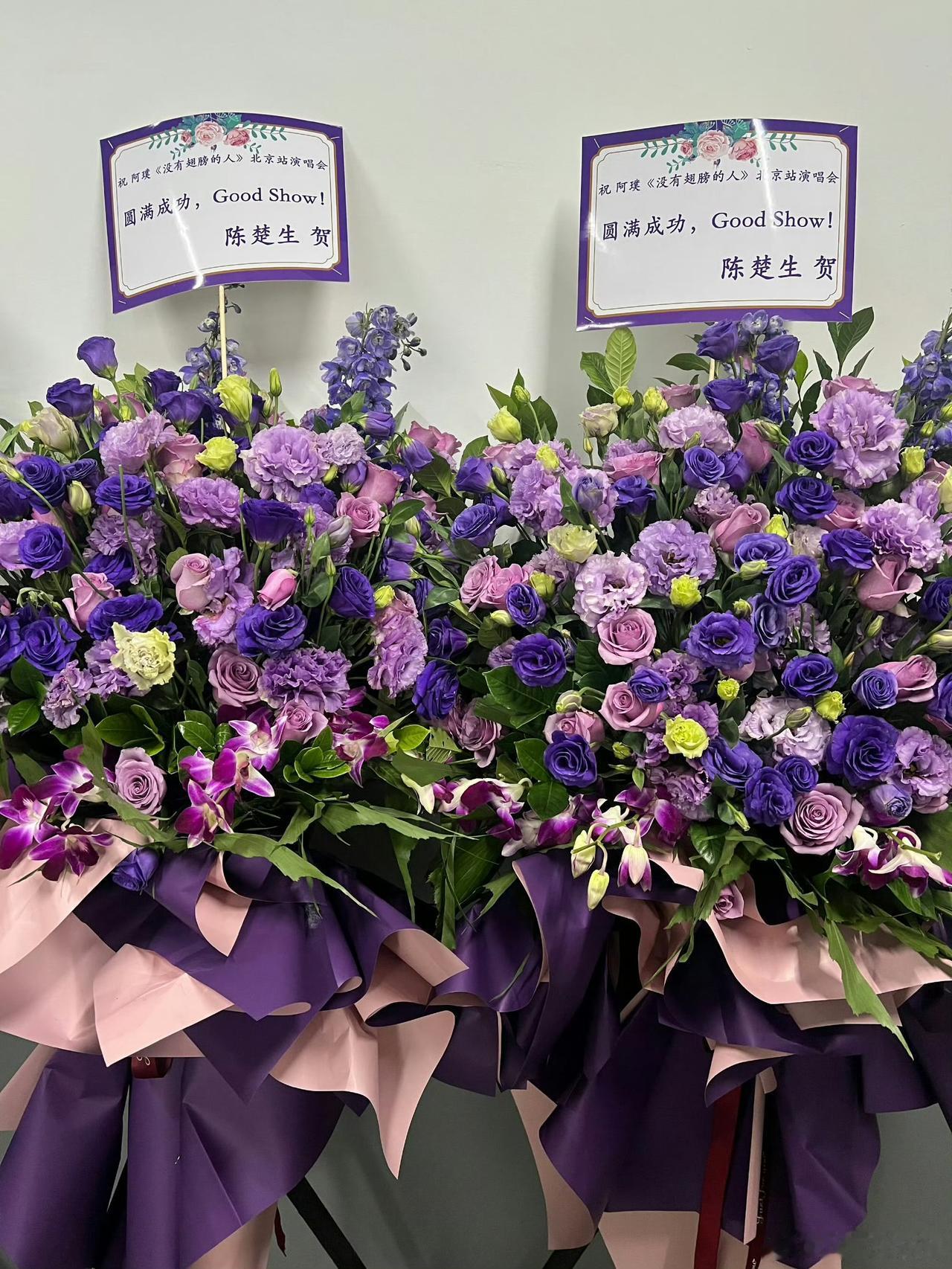 披哥3新售后:陈楚生为兄弟阿璞演唱会送花篮了。 阿璞《没有翅膀的人》演唱会北京站来了。 一看是自己披哥上的兄弟阿璞,而且还一起合唱过《光明》,陈楚生为其演唱会送上了漂亮的紫色系花篮。 花篮上的留言也很温暖,祝阿璞的演唱会“圆满成功,Good Show!” 一对花篮就让兄弟间的友情具象化了。