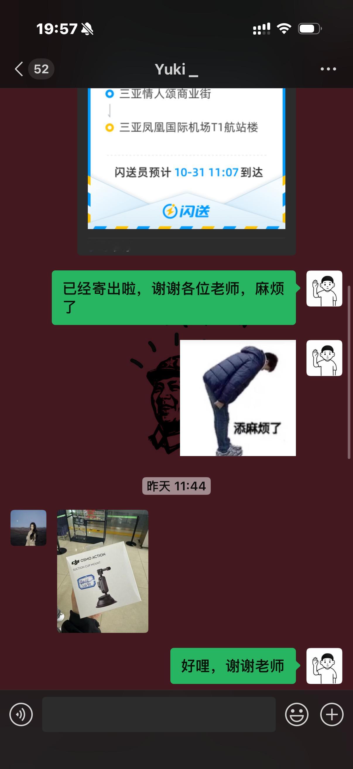 团队的吸盘不够用,出差拍摄又着急用,电话联系了三亚一个门店跑腿送的,还麻烦客户在机场帮我接着它,真不容易[允悲]