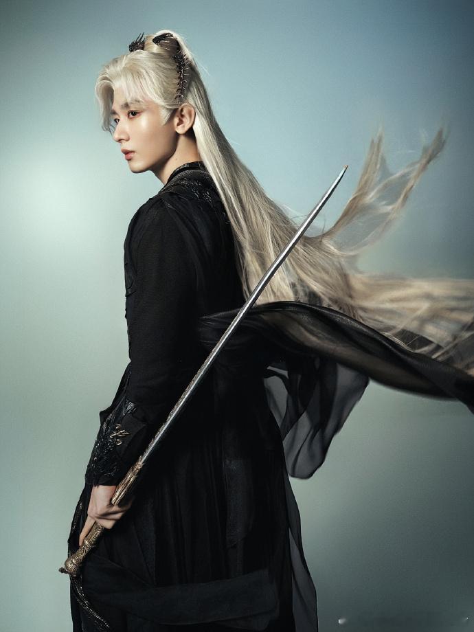 成毅王权富贵白发撕漫男成毅摸唇成毅《天地剑心》王权富贵造型出圈,白发配建模脸