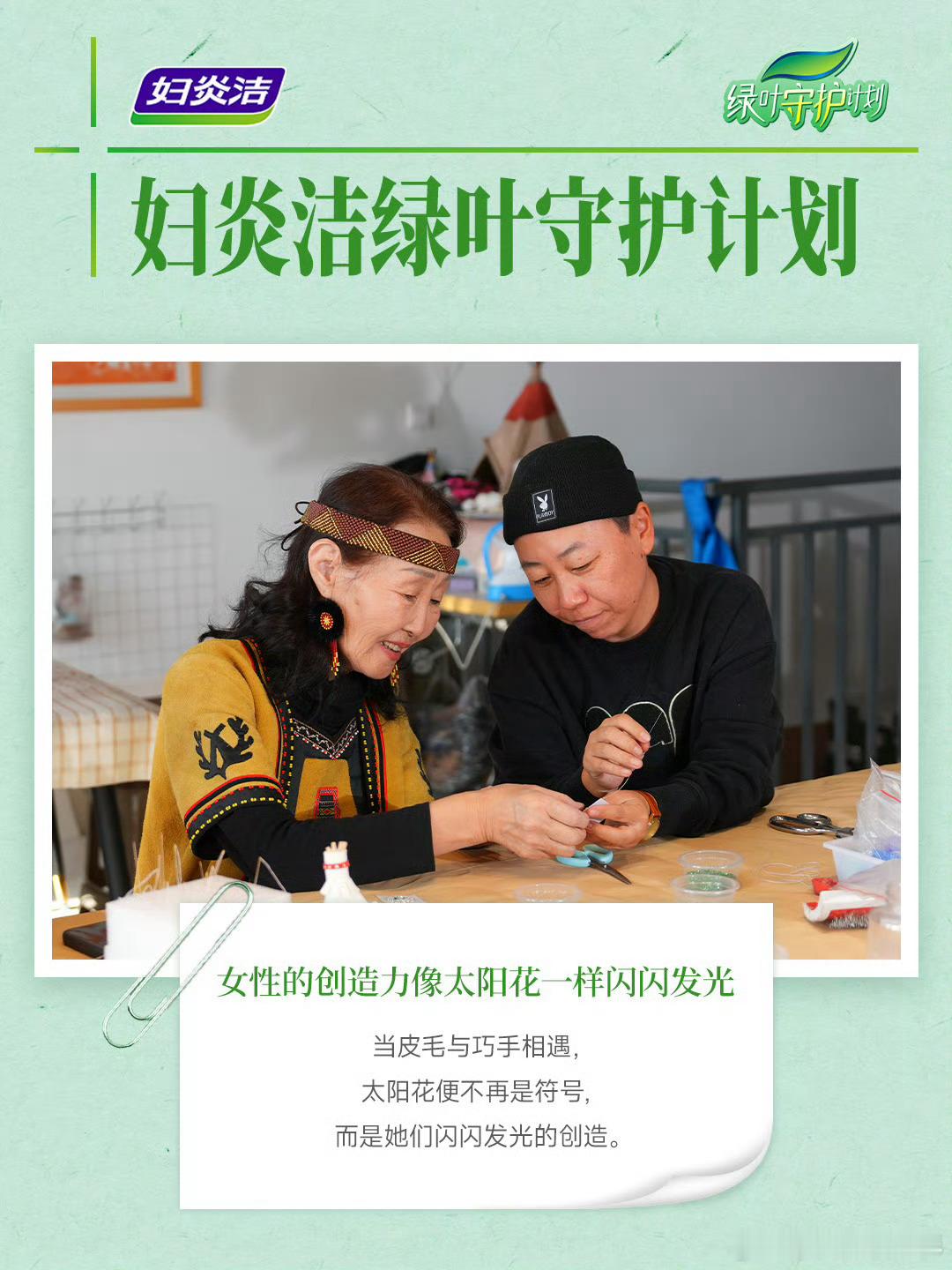 妇炎洁“绿叶守护计划”为当地女性带来健康关怀的同时,也邀请老师传授互联网技能,帮助她们将手工艺品传播出去,实现经济独立。健康是土壤,技艺是养分,支持则是阳光。