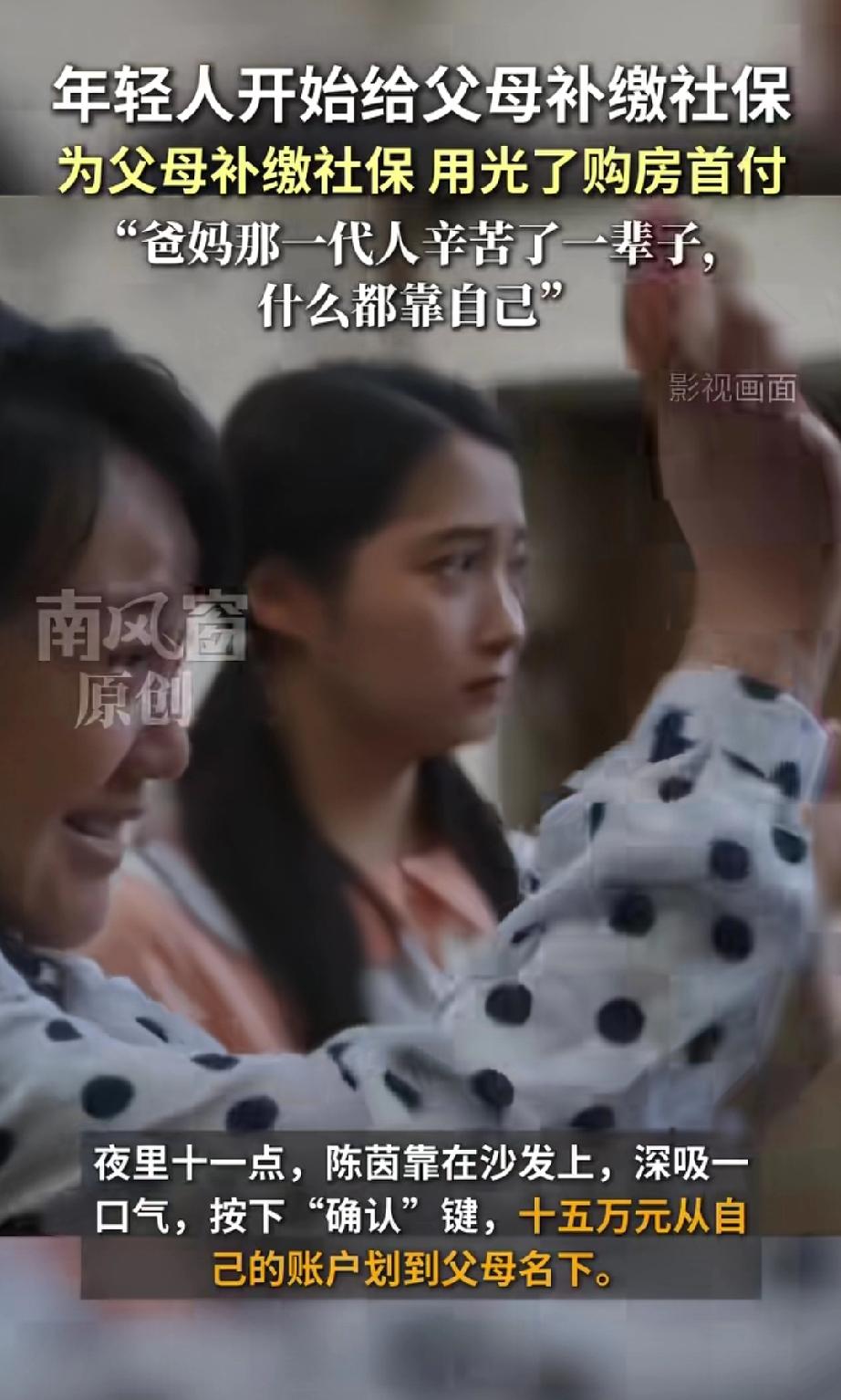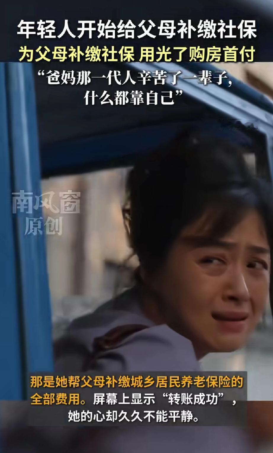 深夜,女子思忖良久,毅然按下“确认”键,将自己多年积攒的15万房子首付,为父母补交了城乡居民养老保险的全部费用。 女子表示:“钱还能再赚,父母养老等不得,我只想让他们晚年安心。” 这15万,换来在家务农的,现在50多岁的父母,60岁以后,每人每月几百元的退休金。 这15万,是女子和老公几年的积蓄,她的做法也获得了老公的支持。 看到这则新闻,我不禁思绪万千,热泪盈眶。 孝顺的孩子,是父母晚年最坚实的依靠。有了这份养老保险,是父母的晚年的底气。 据南风窗新闻报道,如今成年子女为父母缴纳养老保险,已成为年轻人新的风尚与追求,是一种回报父母养育之恩的,感恩之举。 时代更迭,教育水平提升,让新一代年轻人更明白孝道的内涵。他们不仅为自己规划未来,也为父母提供保障,甘愿自己当下多吃些苦。 这些儿女,孝心不止流于言语,更体现在细微行动中,如春风化雨,滋润着双亲的心田。 希望这样的温暖与爱,代代相传。 来源:南风窗
