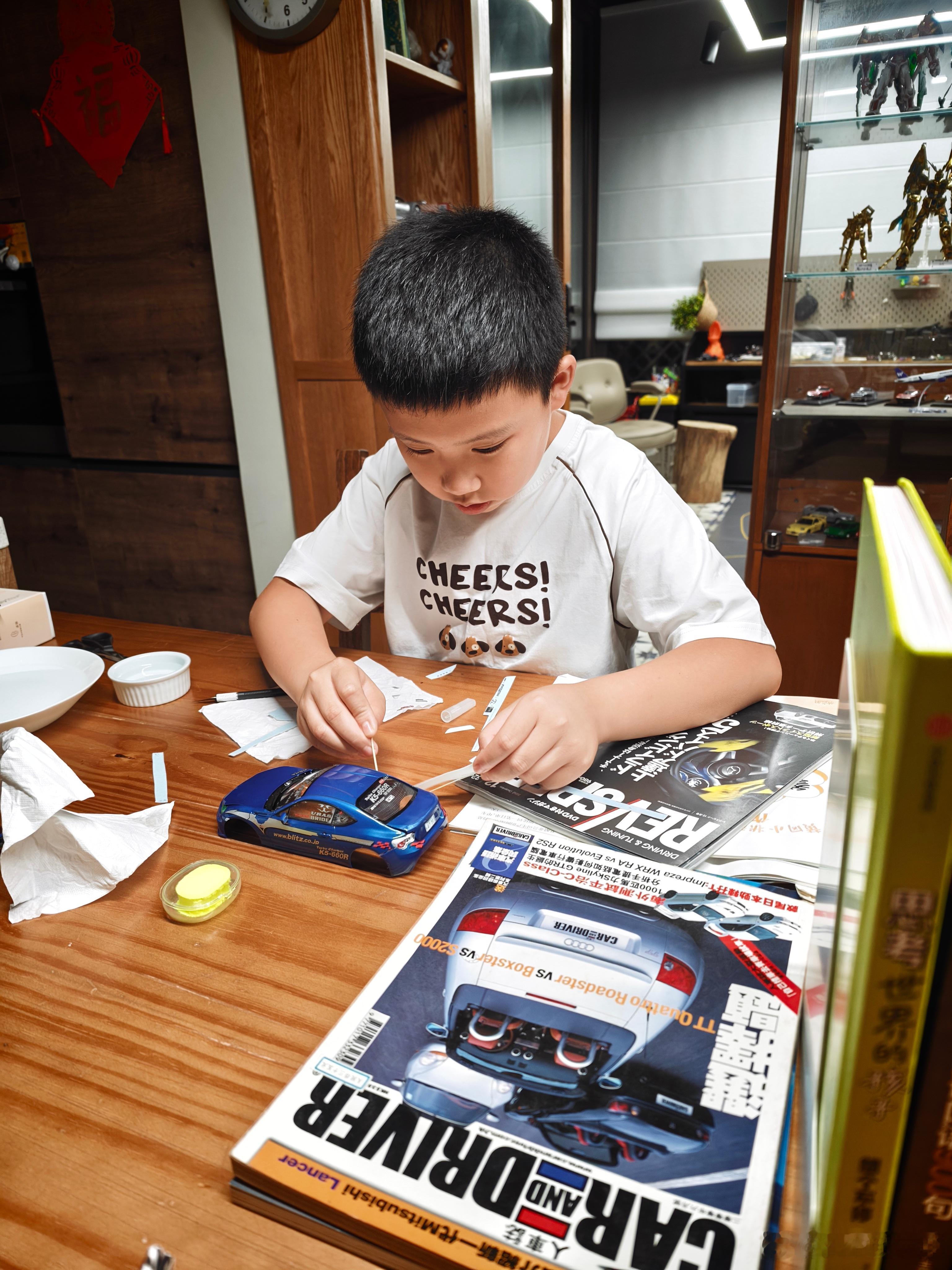 儿子玩RC,进化到自己弄车壳了,他说这是“鸠改”风格的作品,前后盖是故意留条缝的,后保险杠下唇是故意掉的,漂移车免不了磕磕碰碰,还挺传神[笑而不语]