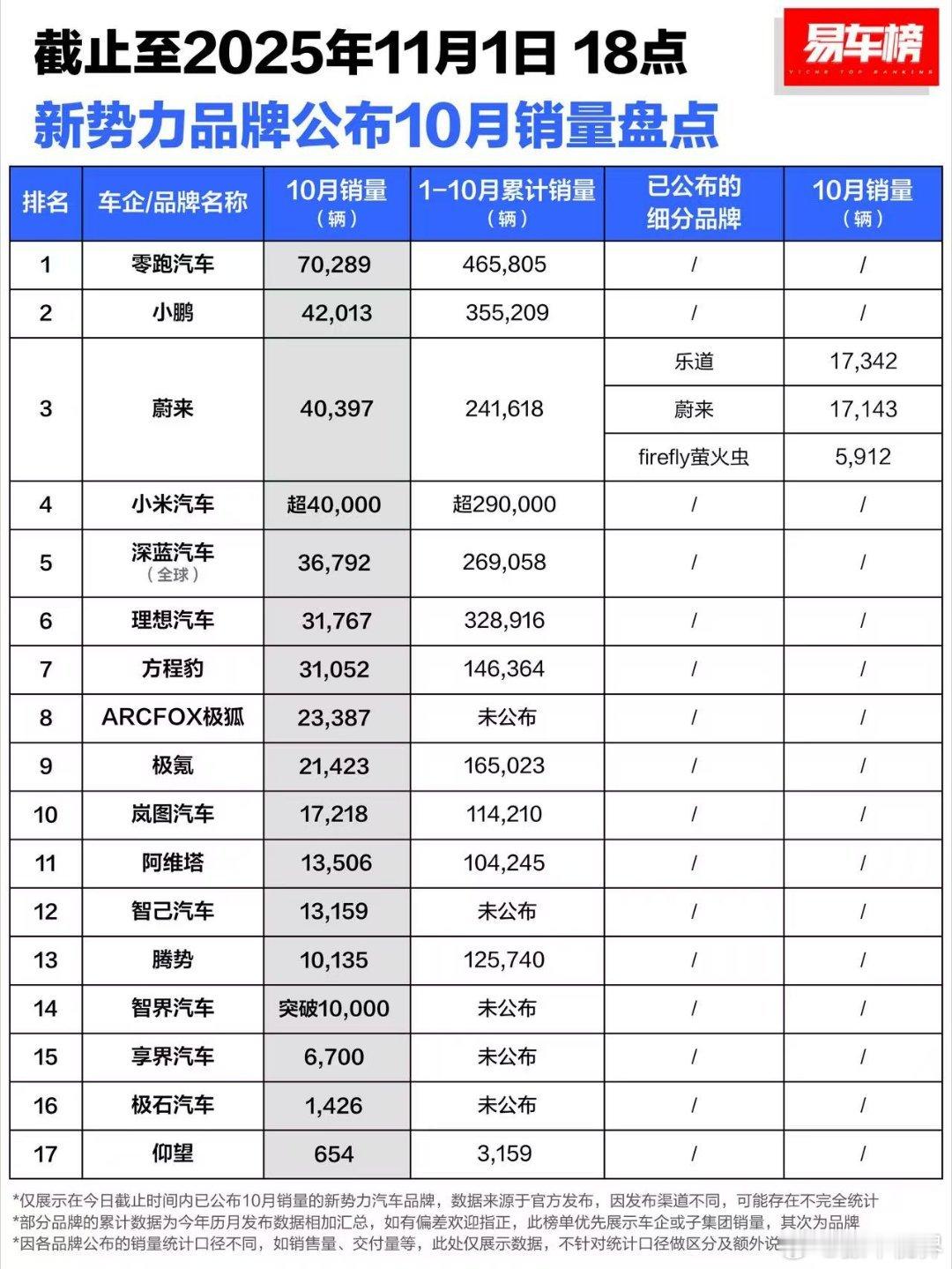 10月份车企销量就不单独发了,看图1 图2吧,再补一个「华为」的!