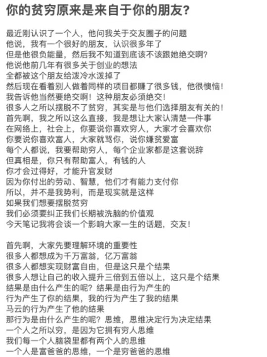很多人之所以摆脱不了贫穷,其实是与他们选择朋友有关的!