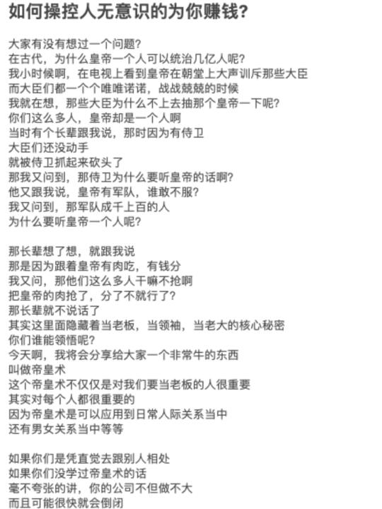 这个帝皇术不仅仅是对我们要当老板的人很重要