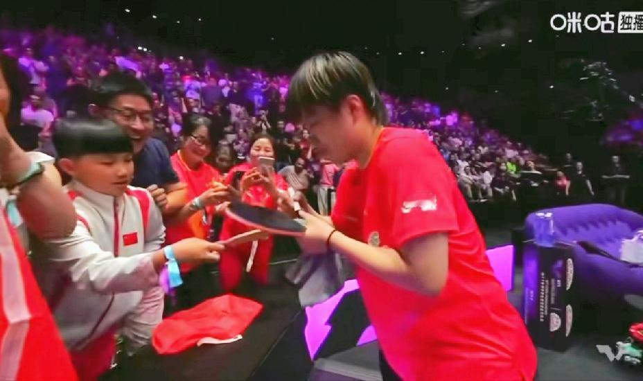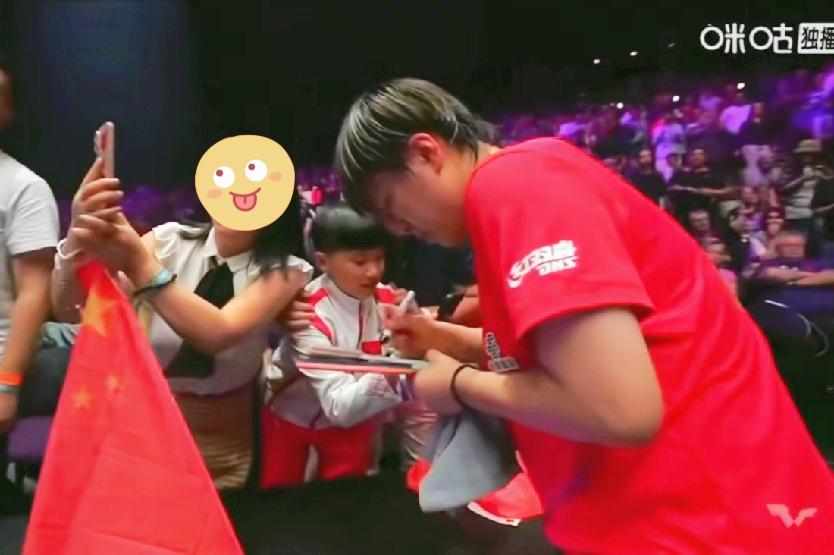 太感动了, 在蒙彼利埃冠军赛, 终于看到了那一抹红。 蒙彼利埃冠军赛, 谁和国乒打老外就给谁加油。 这次也不例外, 王艺迪对战张本美和, 场上的老外一边倒给张本加油, 她们希望张本赢。 突然镜头里出现了, 几位好汉手持五星红旗, 当看到那抹红, 瞬间热泪盈眶, 这就是我们的底气。 王艺迪赢下张本美和之后, 看到球迷拿着国旗在场边等着, 赶紧过去签名并合影。 太感谢这些球迷了, 你们是最棒的。 虽然就几个人, 可是你们是现场“最靓的仔”, 为你们点赞👍👍