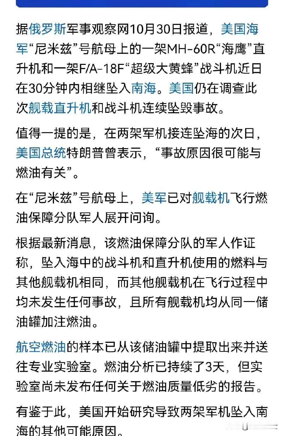 之前说是燃油低劣问题,结果燃油样本已经送给实验室检查了3天,还没有个所以然,而同时期其他加了同批燃油的飞机都没有出现事故,独独这两架掉了海。 只能说明是别的问题,但是还没想好推锅给谁,瞧这笑话闹的,难道真是南海观世音显灵了!