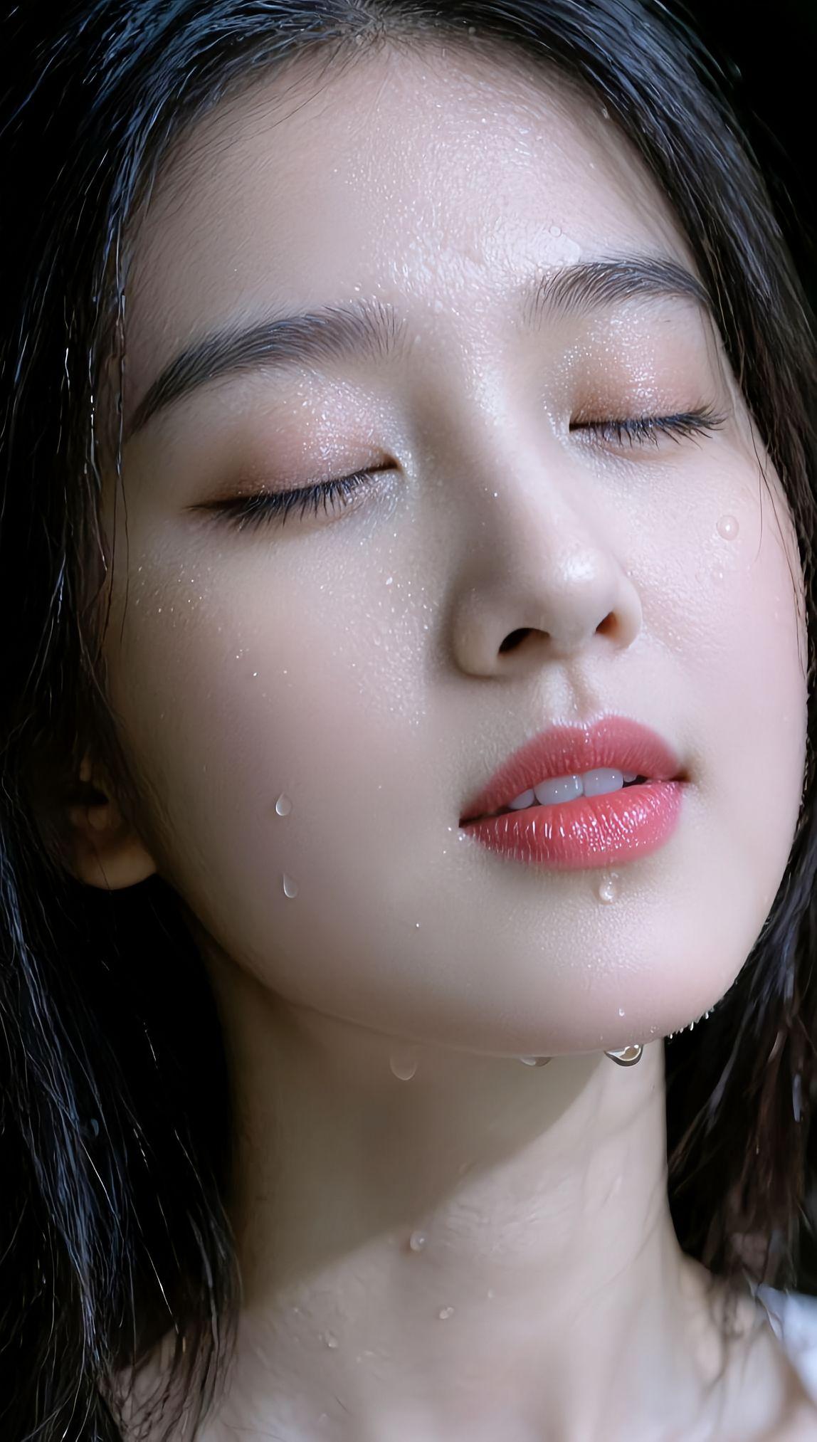 冬日暖阳下的甜美少女,黑发飘飘,红唇微启,温暖如春。
