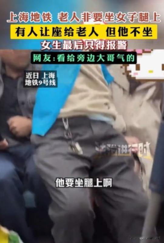 “坏人变老就没办法了吗?”上海,一大爷无视旁人让给他的座位,径直走到一女子前,女子觉察到后本想让座,可大爷竟直接坐到女子腿上。等女子反应过来想要起身时,又被大爷强行用力坐在腿上无法动弹。这明显耍流氓的行为,引起旁边热心群众的不满,有人帮忙拉开大爷,也有人怒斥大爷,可大爷不以为耻反以为荣,哈哈大笑就是不肯让女子起来,就算女子当面打电话报警,大爷仍是有恃无恐。 法治进行时十一月一号报道了这则上海老人坐地铁时,有人让座不坐,非要强行坐在女生腿上耍流氓的新闻。令人愤怒又无语! 事情发生在十月二十八号上海地铁9号线上,当时正值高峰期,地铁上十分拥挤,这时一个身穿蓝色上衣的老人挤了进来。 有人看到老人后,主动让出了座位,可老人跟没看见一样,径直走了过去,随后在一女子和中年男性的缝隙间,坐了下去。 此时正在刷视频的女子吓了一跳,本能的想要推开眼前之人时,可看到是一老人后,伸出的手又缩了回去。 要知道这老人看着就有些年纪了,万一推完之后就倒在地上不起来,那自己就算有八百张嘴也解释不清啊。 现在的局面就很尴尬了,老人一小半的身体坐到男子腿上,大半身体挂在了旁边的女子身上。 感觉到被冒犯的男子开口提醒了几句,可老人跟没听到一样,毫无反应。 更离谱的一幕出现了,随后老人用脚顶着扶手后,整个身体用力往后靠,整个人坐到了女子的腿上。 这一举动直接导致想起身让座的女子动弹不得,整个人看起来很不舒服。 女子被吓得大叫,只得整个人往旁边挪,想要离老人远一点。 老人仿佛像达到了某种目的一样,突然开始哈哈大笑了起来,整个人也是一副享受的表情。 旁边的男子看不下去了,也看出了女子的顾忌,直接破口大骂了起来:“你这老头怎么回事?旁边有人让座你不去,来这里凑什么热闹...” 骂完后男子准备起身帮忙,想把老人推走。 老人不以为耻反以为荣,男子越推他,他就越用力往女子身上靠,并伴随着肆无忌惮的大笑。 这种行为已经算是猥亵了,其他围观的群众也看不下去了,纷纷出言斥责老人。 事情发展到这里,大部分人都知道老人的意图了:明明有人让座不去,非要往女子的腿上靠,明显就是想趁机耍流氓。 老人心里估计也门清:上地铁后先“物色对象”,找到一个看起来好欺负的女性,随后坐到对方的身上,要是对方把自己推倒了,说不定还能讹到一笔医药费;如果对方不敢推自己,也能趁机占点便宜。 老人就是抓住了人们的这种心理,这才如此肆无忌惮的,反正不管结果是什么,吃亏的都不是自己。 事实确实是这样,旁边的男子虽然很生气,但确实不敢用力推老人,旁边的群众虽然都很不齿老人的行为,但确实是没人出面将老人拉走。 无奈之下,女子只好强忍不适,当着老人的面报了警。 可见算这样,老人仍旧一副无所谓的样子,反正就是不肯起身。 那么,从法律角度,如何认定老人的行为呢? 根据《治安管理处罚法》第二十六条规定,有如下情节的将构成寻衅滋事行为: (一)结伙斗殴的 (二)追逐、拦截他人的 (三)强拿硬要或者任意损毁、占用公私财物的 (四)其他寻衅滋事行为 其中,一般情节的,将处五日以上十日以下拘留,可以并处五百元以下罚款;情节较重的,处十日以上十五日以下拘留,可以并处一千元以下罚款。 老人在地铁这一公共场所倚老卖老、无理取闹,故意坐在女子腿上,无故侵扰他人,也给公共场所的秩序造成一定影响,其行为构成了寻衅滋事行为,最高将面临十五日的拘留并罚款。 此外,根据《治安管理处罚法》第四十四条规定,猥亵他人的,处五日以上十日以下拘留。 该事件中老人不顾女子的反对,故意坐在对方腿上造成双方的肢体接触,其行为构成了明显猥亵,也要承担相应的法律责任。 最后《治安管理处罚法》第二十三条规定,扰乱公共汽车、电车、火车、船舶、航空器或者其他公共交通工具上的秩序的,处警告或者二百元以下罚款;情节较重的,处五日以上十日以下拘留,可以并处五百元以下罚款。 老人的行为不仅严重侵犯了女子合法权益,也影响了地铁内他人的正常乘车秩序,依法也要承担责任。 目前,有关老人的最后处理结果暂时尚未公布。 那么,对于这种倚老卖老的行为,你有什么好的建议或看法呢?评论区见!