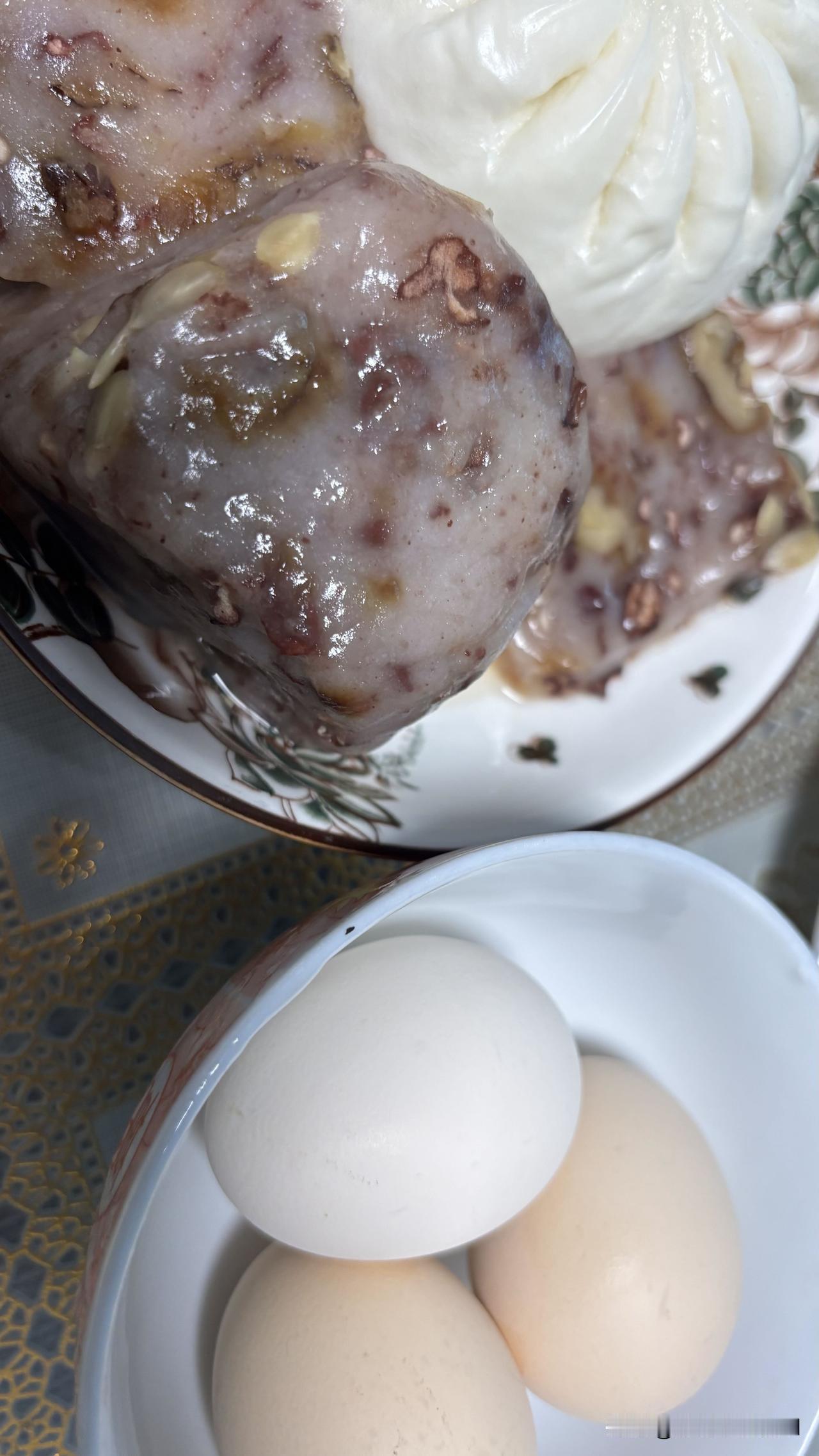 肉粽、赤豆粽、雪菜肉丝炒毛豆、炒茄子、披萨鸡翅、玉菇白瓜、油爆虾、番茄炒蛋、兔肉