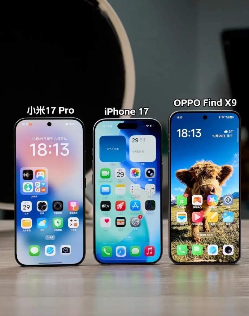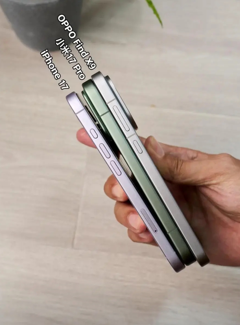 2025三大旗舰,谁的外观是你的菜 双十一选中杯旗舰还真的不是只有苹果!iPhone17、小米 17 Pro、OPPO Find X9 这三款人气中杯旗舰其实也没那么难选~ 就说外观设计,iPhone17 延续简约风,唯一纠结的就是铝合金边框了。小米 17 Pro的流体曲面机身很贴手,后背的妙享小屏更是超有辨识度。OPPO Find X9这极窄直屏观感上是三款里面zui窄的,绒砂工艺背板也是越摸越上瘾,回归矩形DECO简约且不硌手。 我就更偏向于OPPO了,直屏党真的拒绝不了这种无边视觉!你们 pick 哪款?
