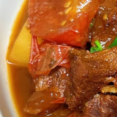 ▪️番茄去皮切块,热锅少油,炒出汁水,倒入牛肉翻炒一会儿