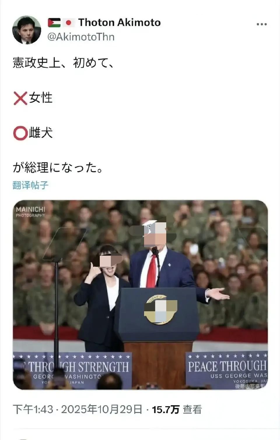谁说你们不懂日语的,来看看,你肯定能明白这个日本网友说的什么内容什么意思! 也难怪,自家的一个大家长,站在漂亮面前化身成了小迷妹,走路时化身成了小挂件,这也忒埋汰了。 虽然说个人社交就是浓缩版的国家外交,但两者之间还是有区分的,特别是国与国之间,需要有一个严肃的边界感,毕竟一言一行代表的是所有国民,这个度若是把握不好,自己丑态百出不说,还让所有人跟着蒙羞。 你认出这个人在帖子里说了些什么吗?