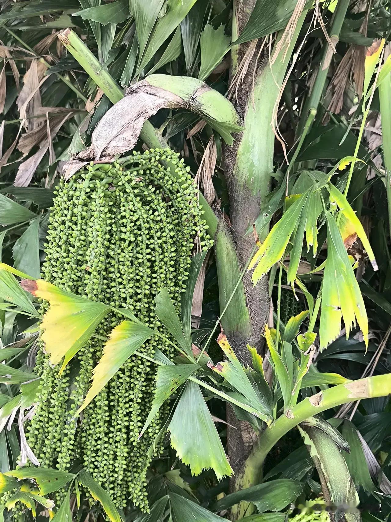 请问大家,以前在深圳这边公园里见到的,这个是不是这些人们吃的槟榔还没有成熟的时候的样子,虽然槟榔主产海南,但是觉得还是咱湖南人把它做成了产业。要是槟榔的话,应该会有人悄悄的摘了,以上仅供参考,属个人意见。