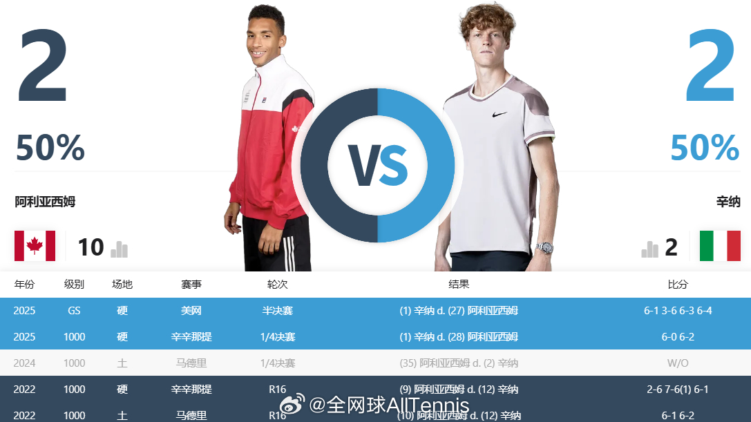 北京时间今日不早于22:00,辛纳与阿利亚西姆将争夺男单冠军,在交手记录上双方2-2战平,若辛纳登顶冠军,他将重返世界第一宝座;若阿利亚西姆最终夺冠,他将直接锁定年终总决赛最后一席。你看好谁夺冠呢?[思考]ATP1000