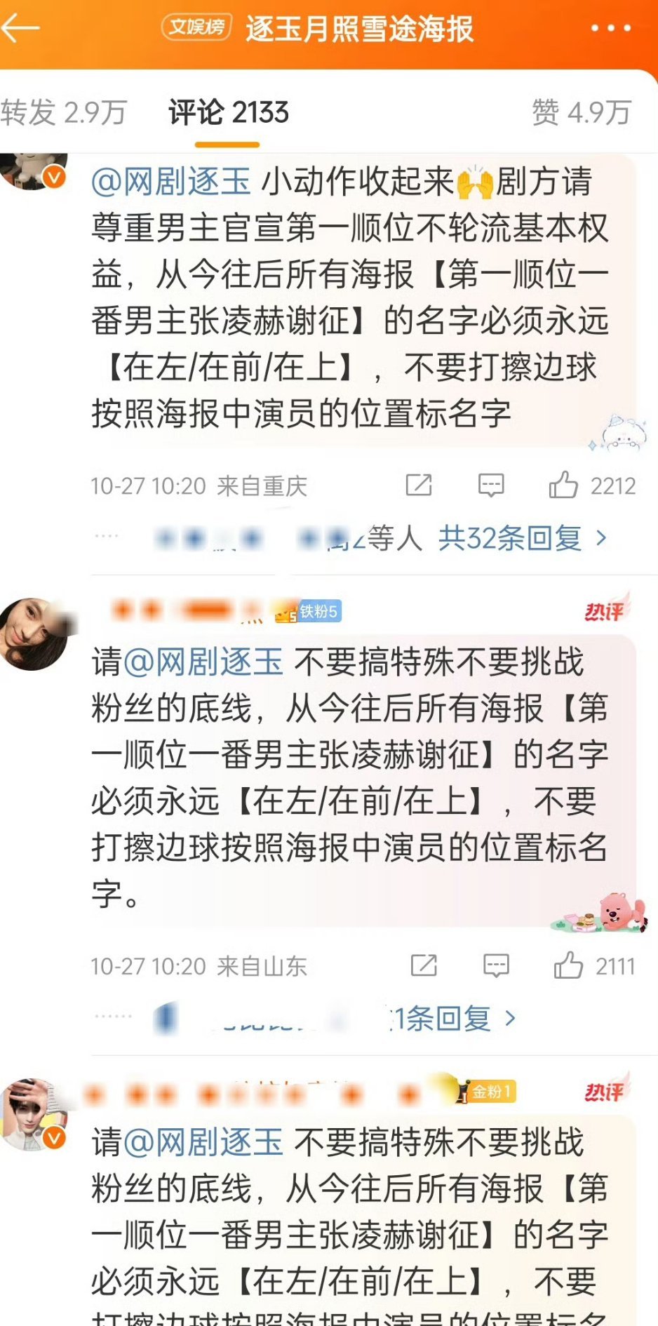 我就说牛牛粉丝要闹吧,现在已经在《逐玉》官博下开麦了