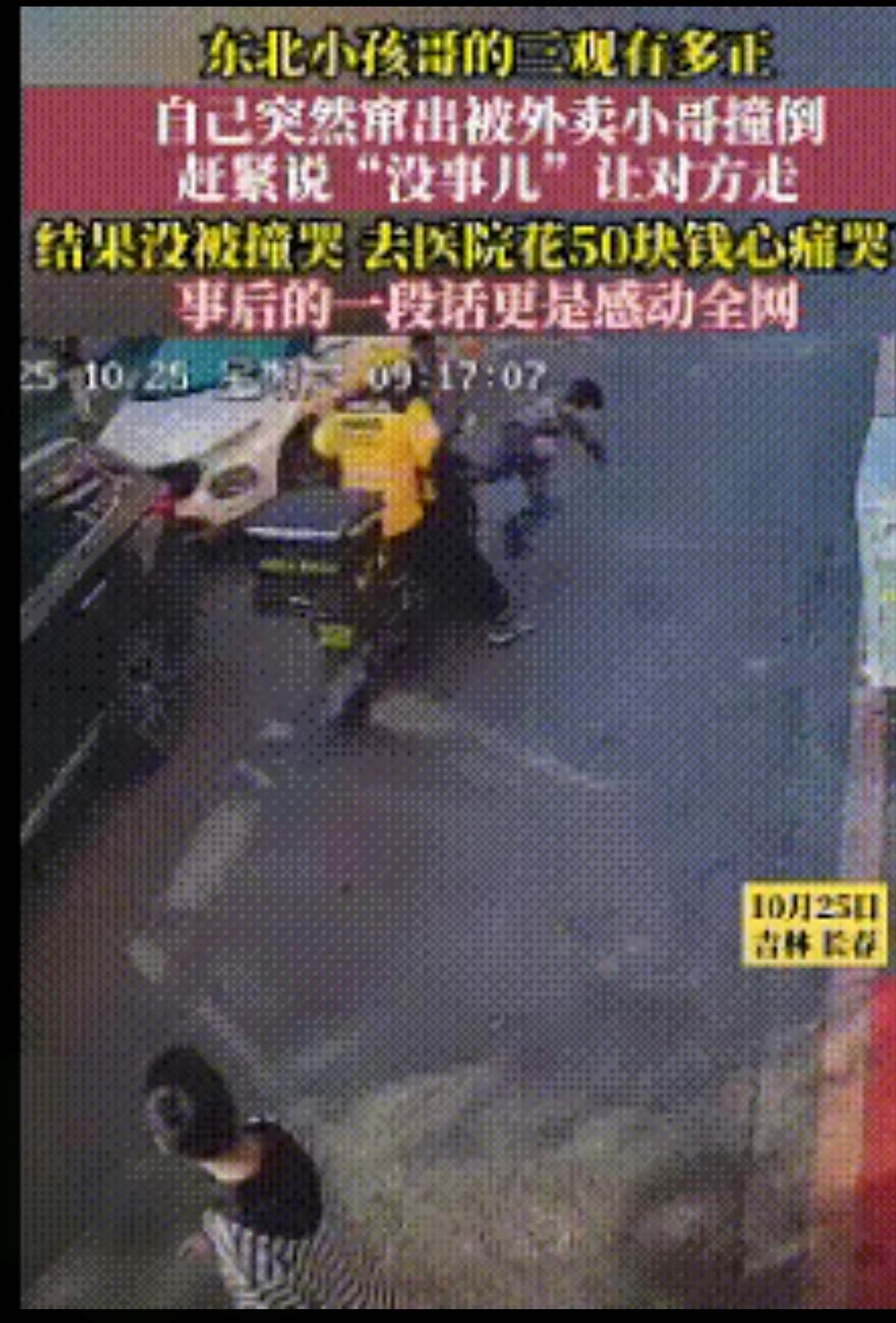 小男孩,不要太懂事喽!这声感叹里,藏的不只是心疼,更是对一种“优质教养”的真正理解。 长春那娃被外卖车撞了,爬起来先替对方解围,说没事让小哥去忙,这懂事劲儿看得人心里一暖。可转头为50块医药费掉眼泪,念叨着“都怪自己”,又让人忍不住揪心。 好多人夸他三观正,说背后是好家长。但我觉得,这不是简单的“教出来的懂事”,而是孩子打心底里长出的善良和担当。他懂外卖小哥的辛苦,也懂自己该担的责任,这种“懂事”是明事理,不是委屈自己的讨好。 现在总说要孩子懂事,可真正的懂事从不是压抑天性,而是像这娃一样,既看得见别人的难,也守得住自己的责。 你们说这种不矫情、有担当的“小孩哥”,是不是比只会听话的“乖孩子”更可爱?