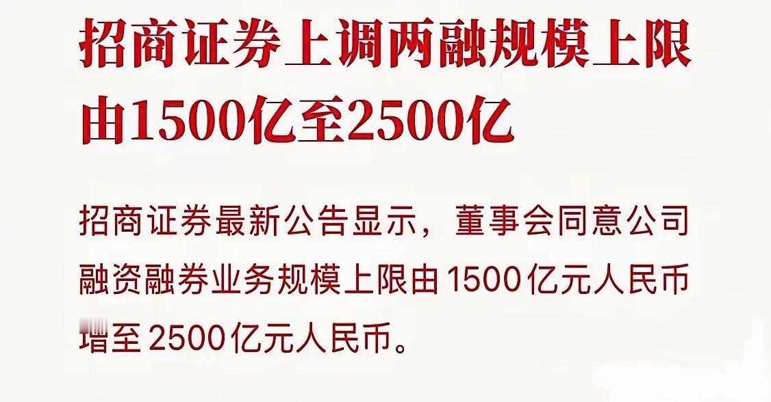 太疯狂了,两融额度整整提了1000亿,招商证券先开了个头,后排券商肯定也会提额,这就不是几千亿可以挡住的了,最后的结果肯定是以万亿计算的。