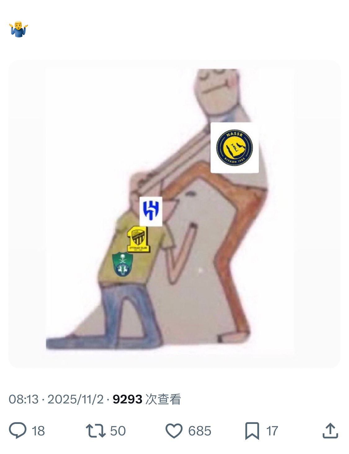 看不懂。。。怎么一个个的都这样[裂开]利雅得胜利2比1费哈