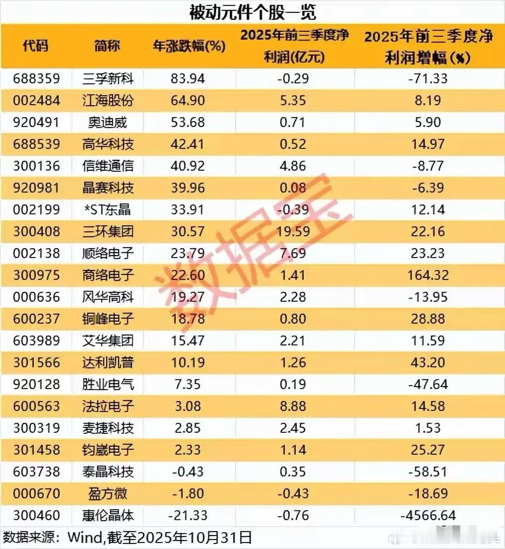 这些被动元件个股覆盖电容、电感、晶体元件、电子陶瓷等多个细分领域,业务涉及研发生产、分销等环节,应用场景涵盖消费电子、汽车电子、通信、工业等广泛领域,在行业涨价及新兴需求驱动下,各企业凭借自身业务布局参与市场竞争。