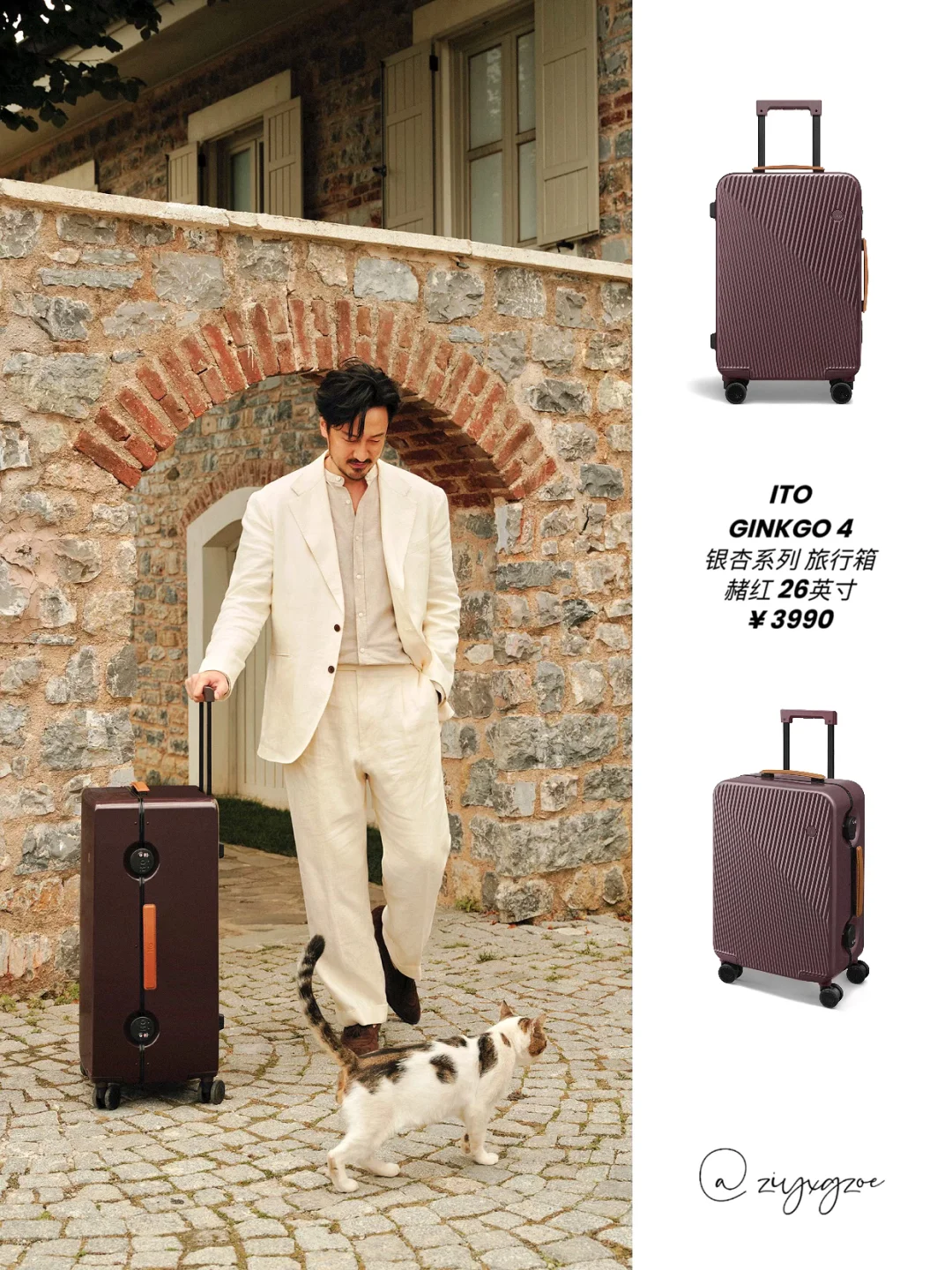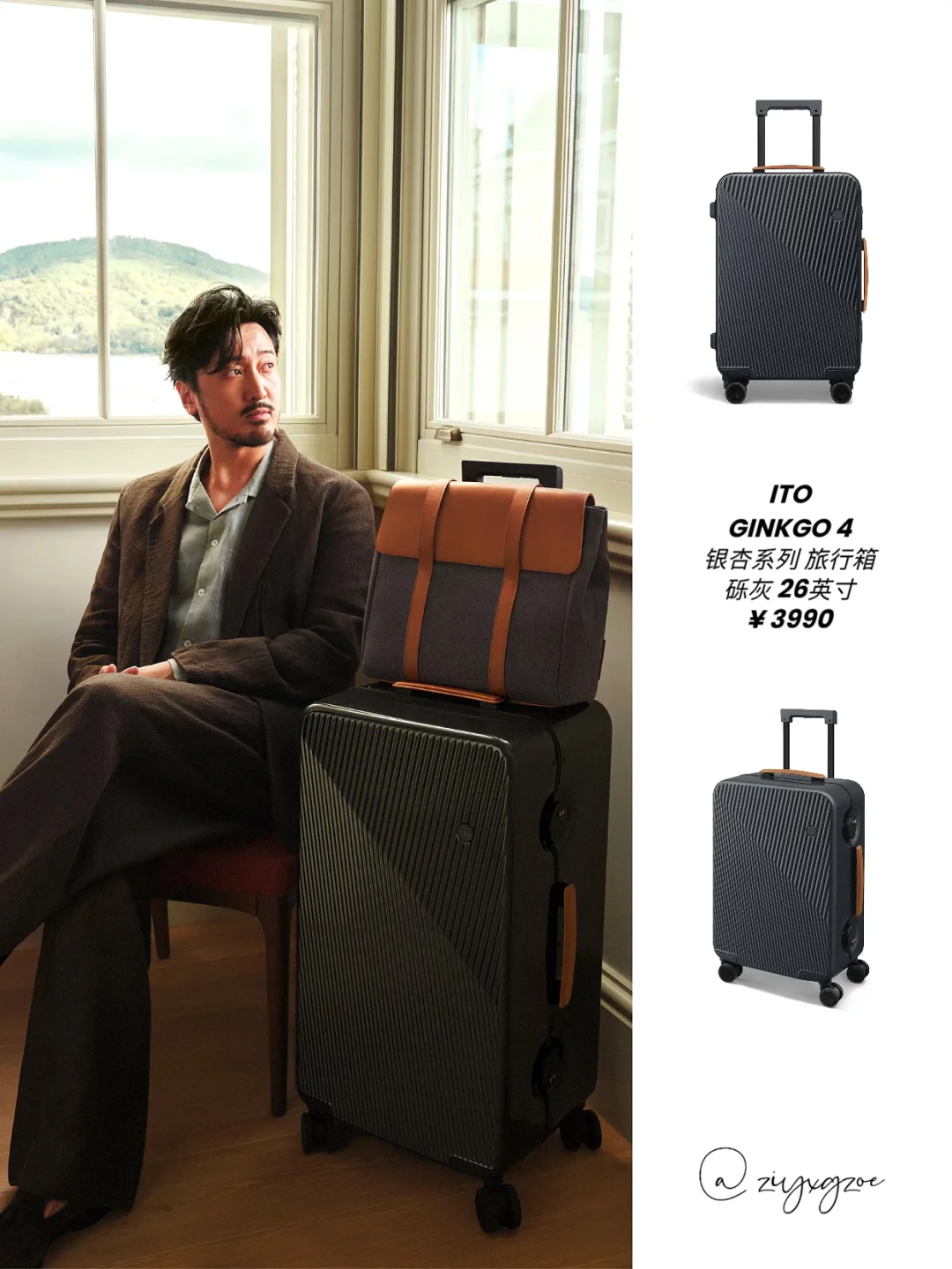 11月1日,ITO 正式官宣王传君出任品牌大使,以「纵行时光」为主题,推出 GINKGO 4 银杏系列旅行箱。新品延续「圆与方」设计理念,借斜纹细节重塑东方美学的光影气质。
