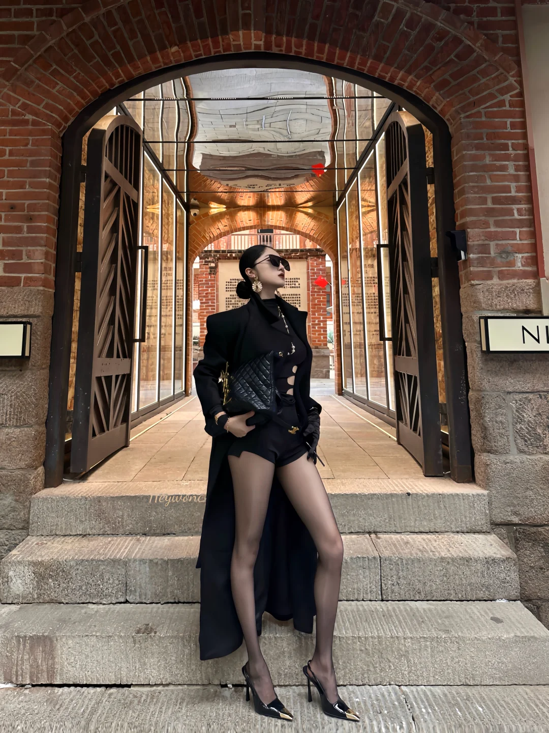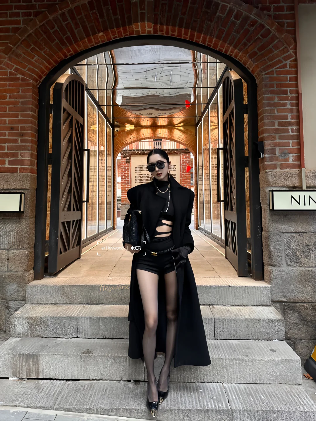 街头偶遇时尚女孩,白色上衣配黑色皮裙,简约又时髦,尽显青春活力。
