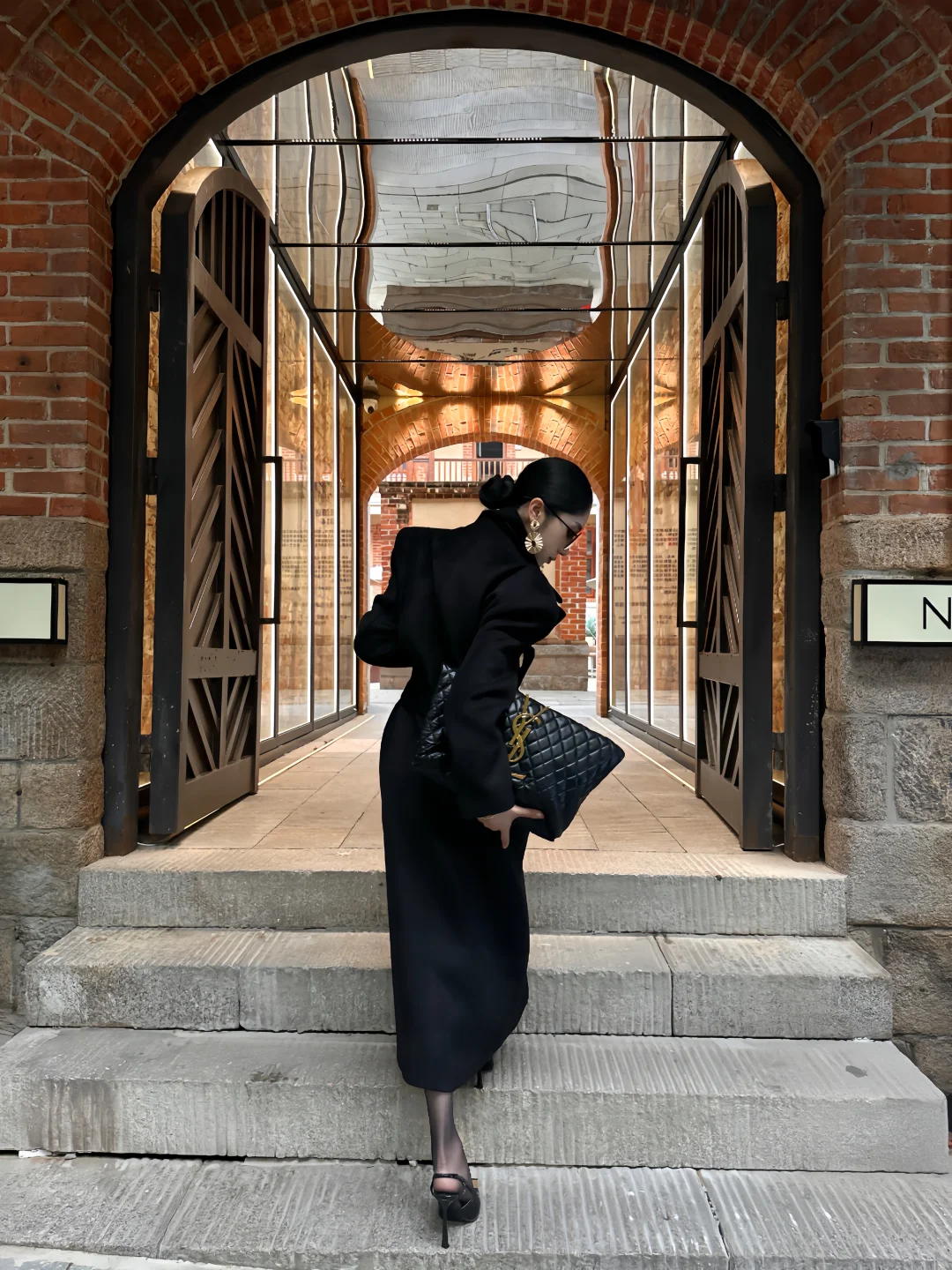 街头偶遇一位女士,米白交叉针织衫配浅蓝牛仔裤,脚踩米色高筒靴,简约又时尚,尽显都