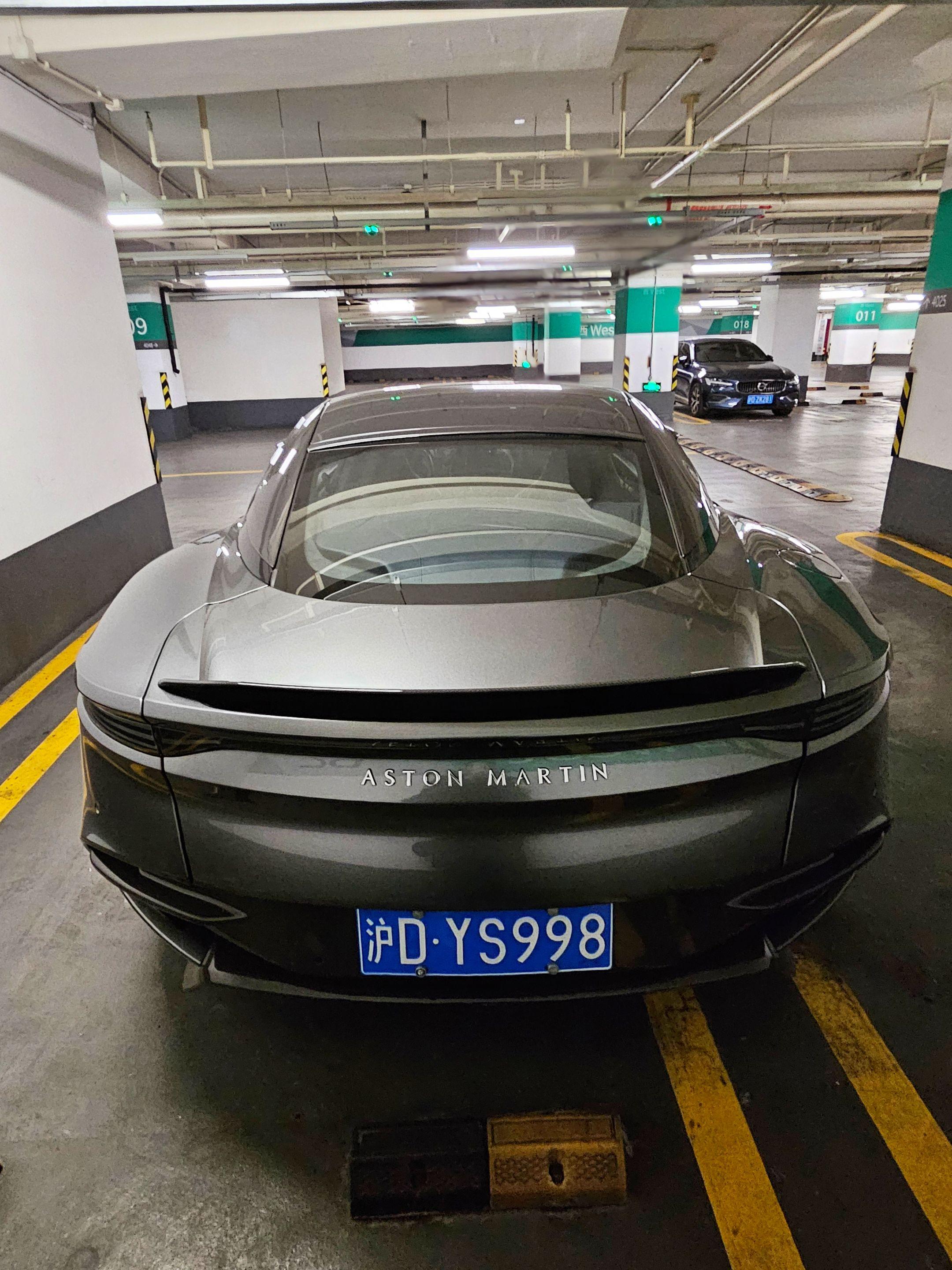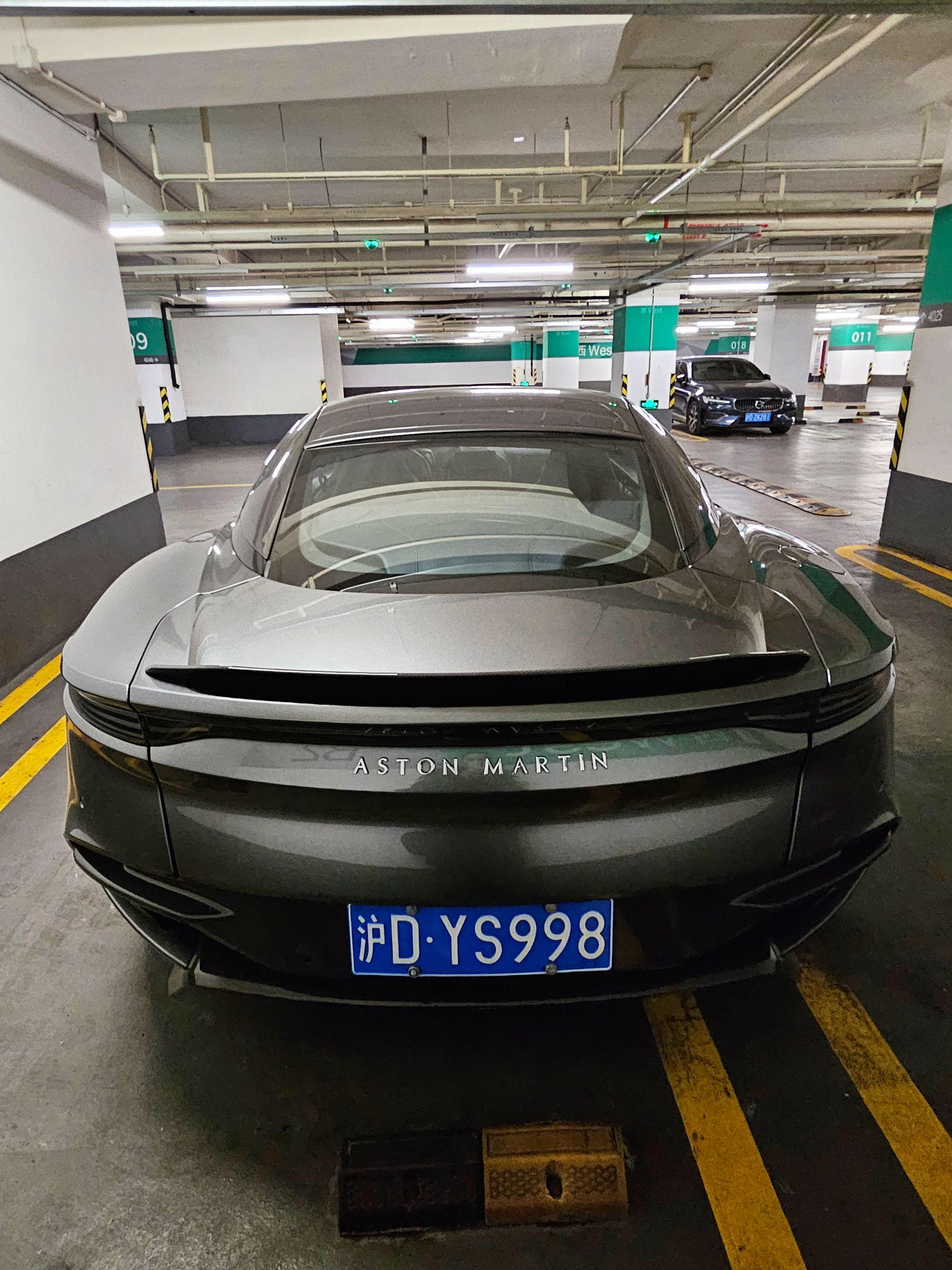 在上海国金广场地库偶遇高富帅座驾阿斯顿马丁DBS超跑英国绅士风范,实车看到优雅帅气