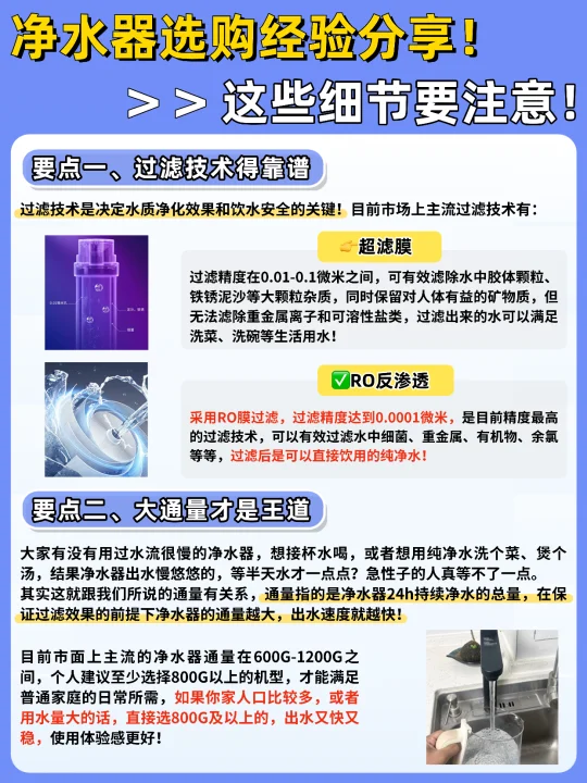 姐妹们!是不是觉得选净水器头都大了?🤯 各种参数看得眼花缭乱! 一不小心就会踩坑!今天就把我的7条实用心得分享给大家~