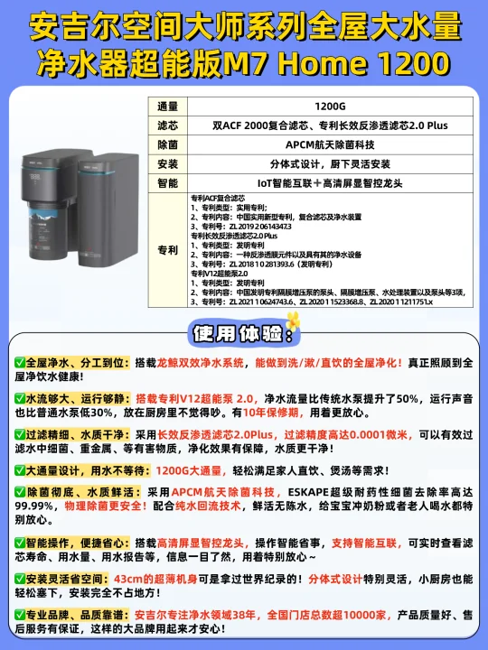 我家入手的安吉尔空间大师系列全屋大水量净水器超能版M7 Home 1200符合以上所有要点,用下来真心满意~🥰,