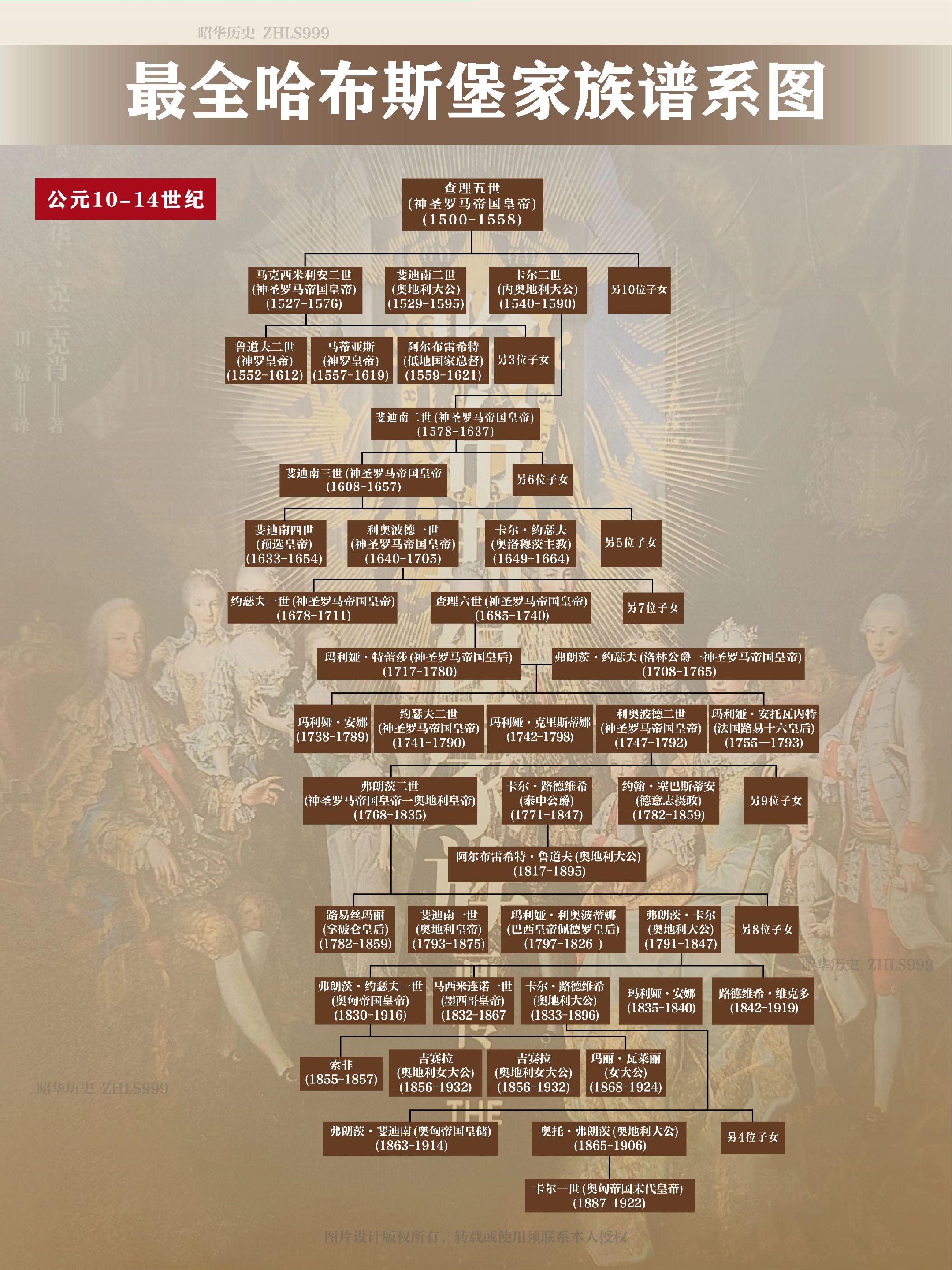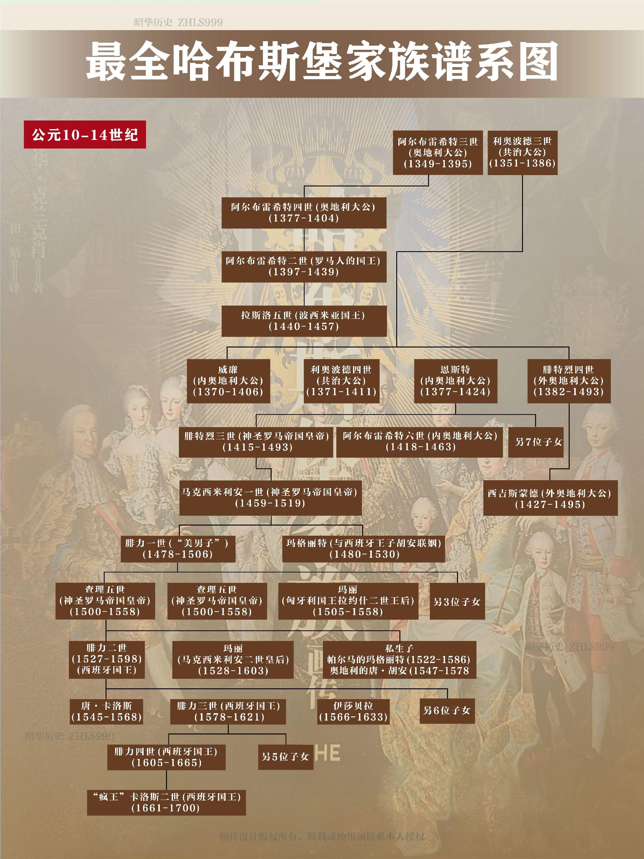 最全哈布斯堡家族谱系图。