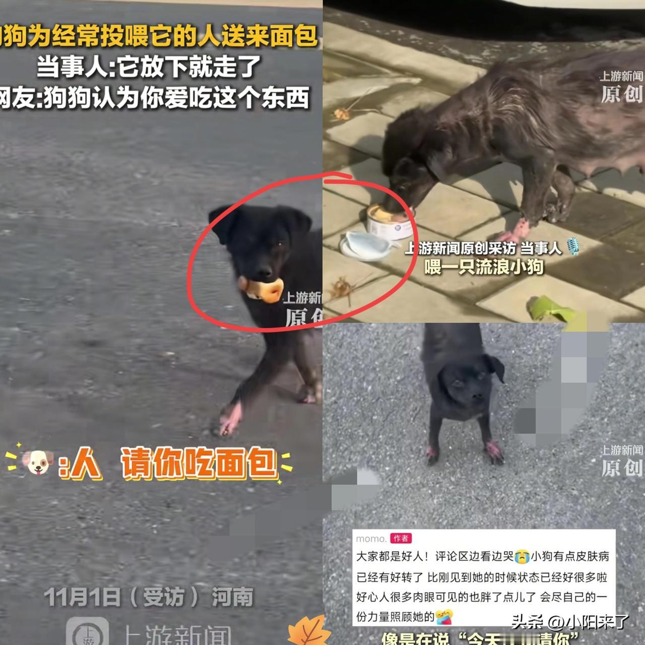 万物皆有灵!河南,女子投喂了一个月的流浪狗,从老远跑过来找她,一开始以为它饿了来要吃的,结果它 嘴里叼着块大面包! 轻轻放在女子面前就转身,走时还三步一回头,那模样像在说“今天换我宠你”,瞬间戳中无数人的心! 要知道这只狗狗自己都吃不饱,还怀着孕,却把拼尽全力找到的“宝贝食物”留给恩人,没有半点犹豫! 它不懂什么大道理,只凭着最纯粹的本能,你对我好,我就把最好的都给你,这份跨越物种的真诚,比任何甜言蜜语都更打动人! 女子的坚持投喂不是单向付出,狗狗的笨拙回馈,让善意有了最温暖的闭环! 网友说狗狗大概觉得“我爱吃的,恩人肯定也爱吃”,这份“以己度人”的天真,恰恰是最珍贵的心意! 它放下面包就默默离开、反复回头凝望的样子,藏着懂事又重情的温柔,也狠狠印证了“万物皆有灵”从来都不是一句空话! 善意从来不分高低,也无关物种,你播下的每一颗温暖种子,都可能收获意想不到的惊喜!